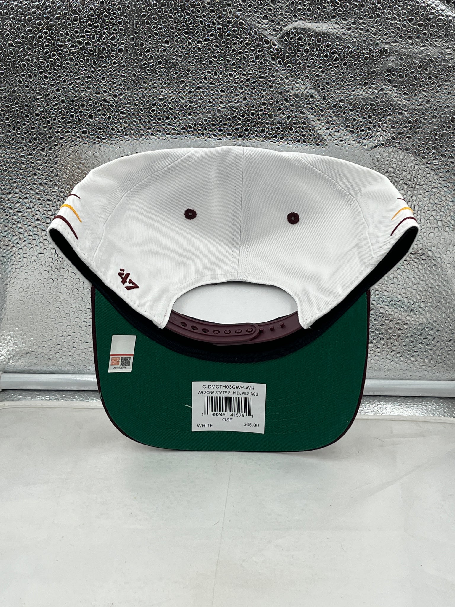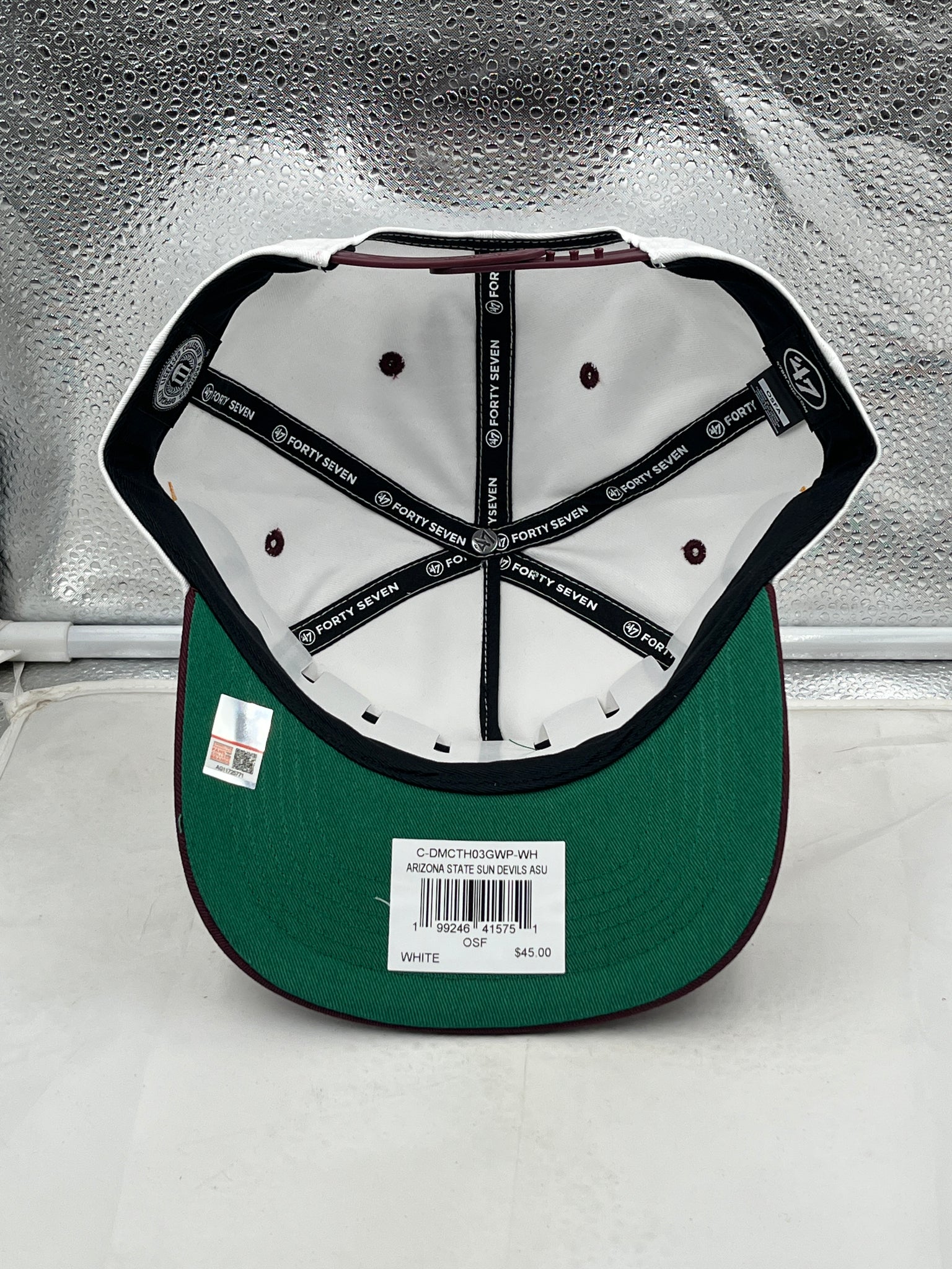 Arizona State Sun Devils NCAA '47 White Diamond Hitch Snapback Adjustable Hat displaying the front view of the stylish cap.