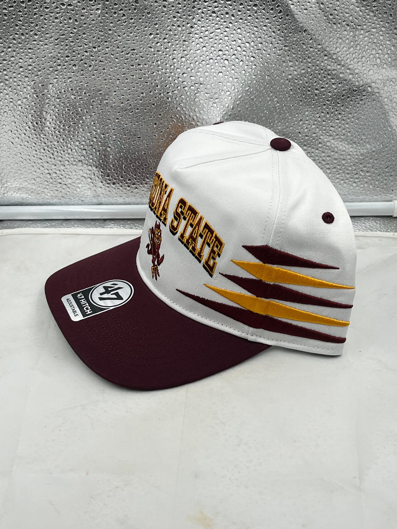 Show your support for the Arizona State Sun Devils with the stylish Arizona State Sun Devils hat from '47. This White Diamond Hitch Snapback Adjustable Hat combines functionality with a sporty flair, making it the perfect accessory for any fan.