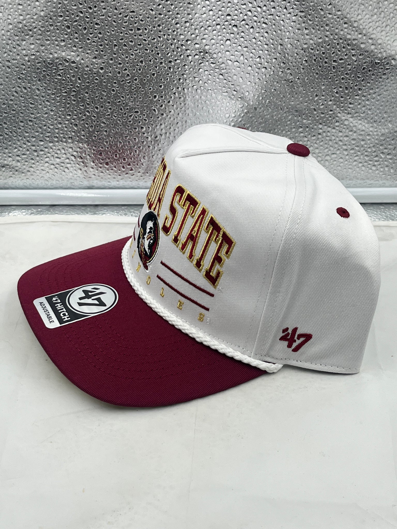 Show off your school spirit with the Florida State Seminoles FSU NCAA '47 Brand White TT Hitch Rope Adjustable Hat. This stylish hat is perfect for any avid Seminoles fan looking to showcase their loyalty on game day or any casual outing.