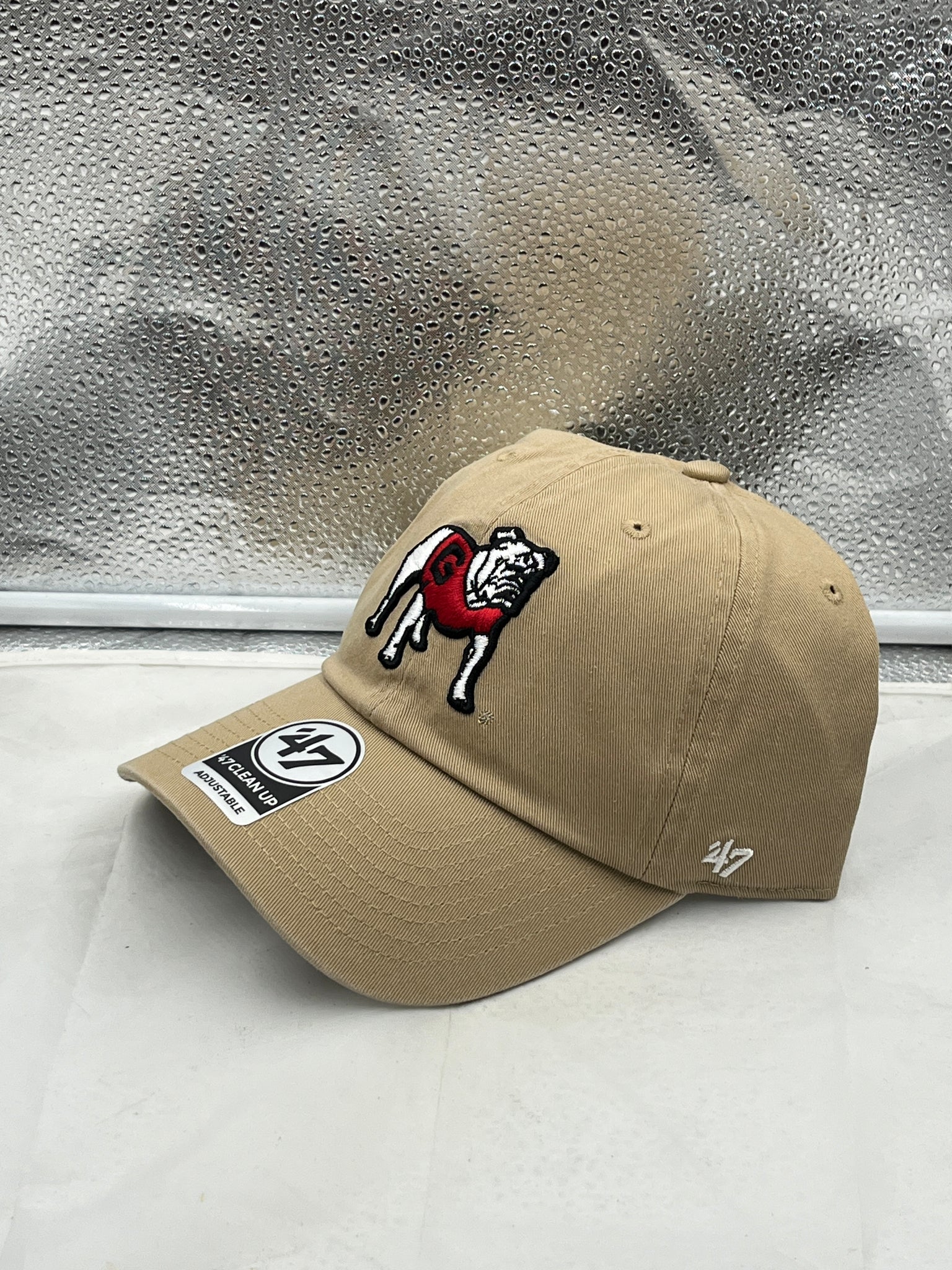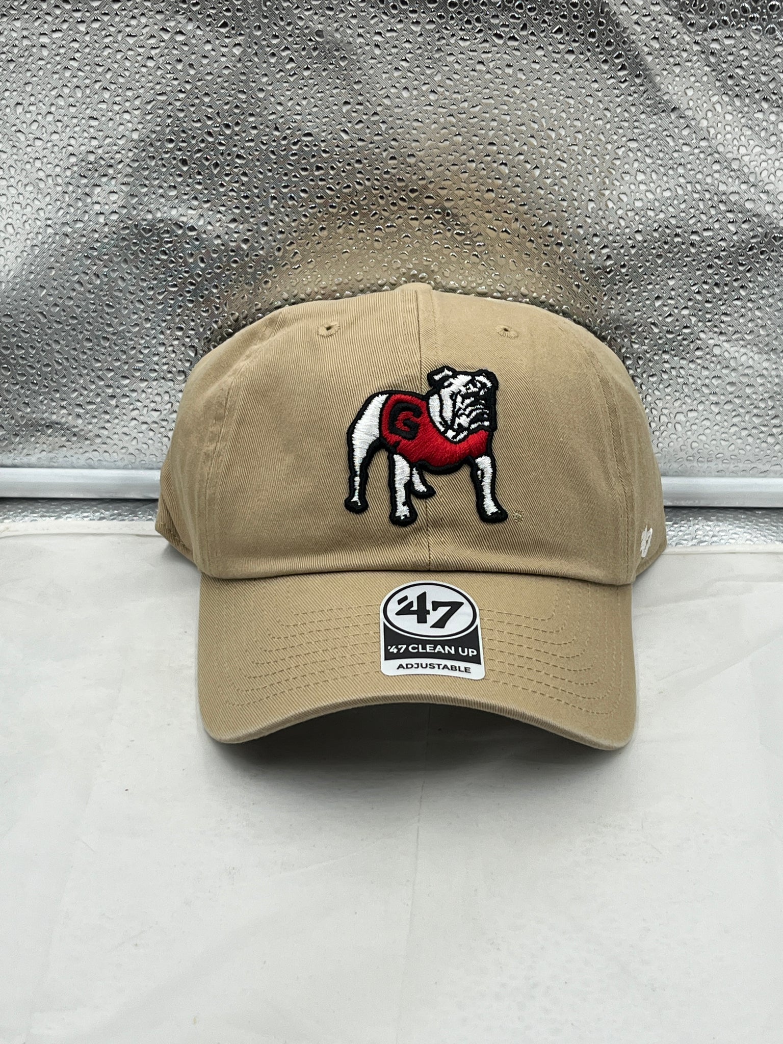 The Georgia Bulldogs NCAA '47 Throwback Khaki Clean Up Adjustable Strapback Hat also features embroidered Georgia Bulldogs logos, showcasing your pride in your team. Stand out in the crowd at the stadium or on campus with this classic cap that blends nostalgia with modern trends.