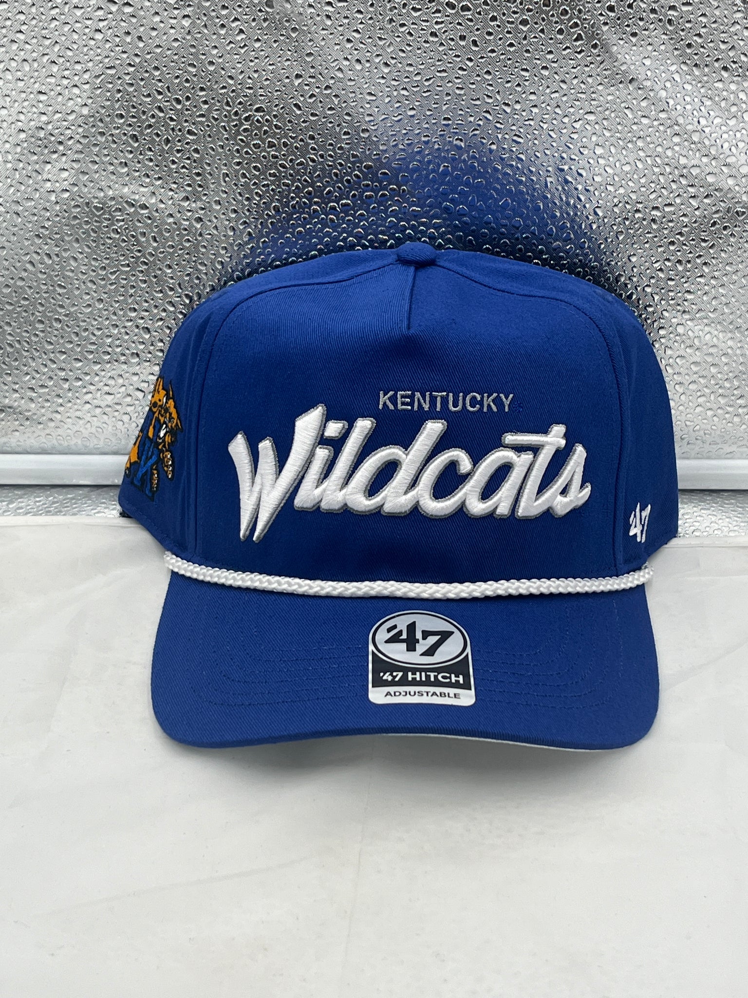 Show your unwavering support for the Kentucky Wildcats with the '47 Blue Script Rope Hitch Adjustable Snapback Hat. This stylish cap is perfect for any dedicated fan looking to showcase their team spirit while enjoying comfort and performance. Designed with pride, this hat combines classic aesthetics with modern flair, making it an ideal accessory for game days or casual outings.