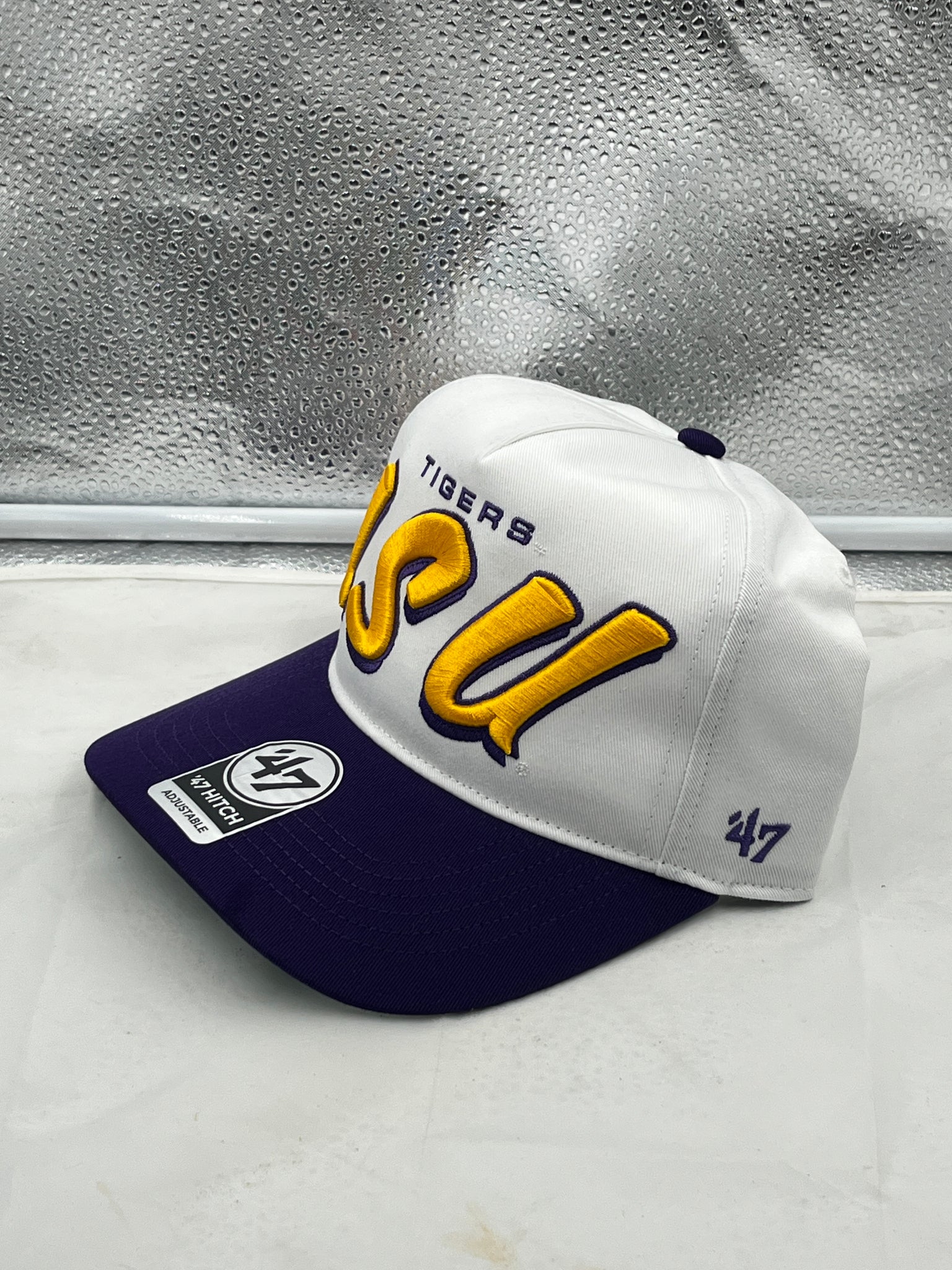 Show your undying support for the LSU Tigers with the NCAA '47 Brand White Two Tone Script Hitch Adjustable Snapback Hat. This stylish and versatile accessory is perfect for game days, tailgating, or just hanging out with friends while showcasing your team pride.