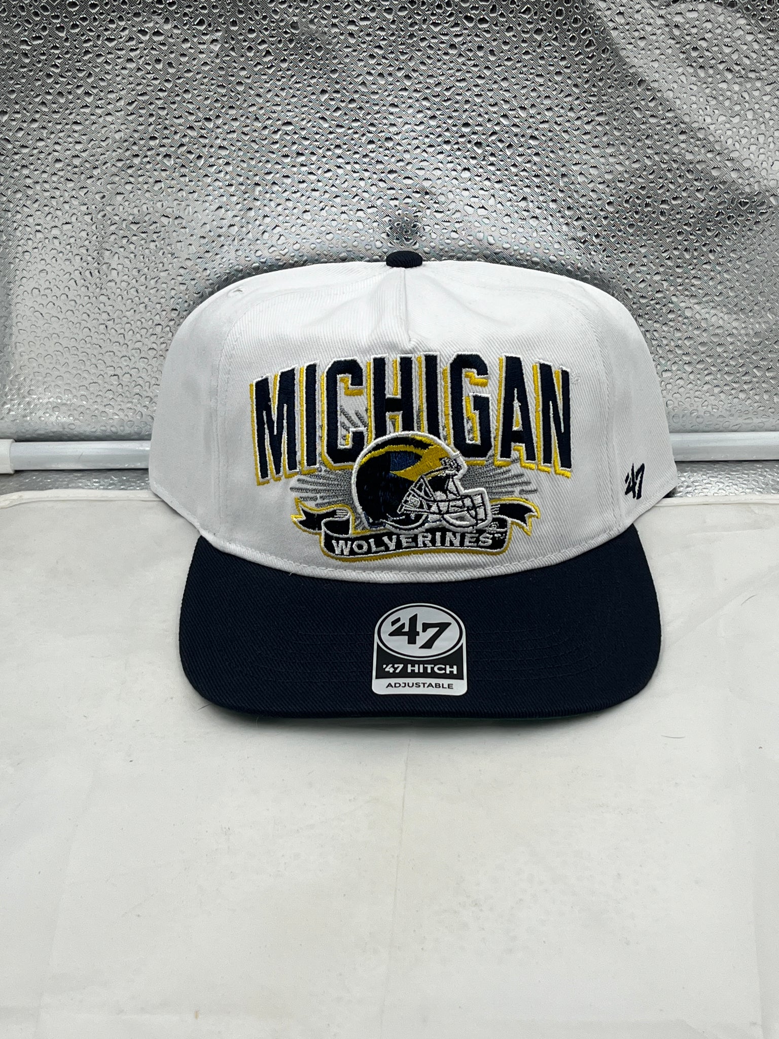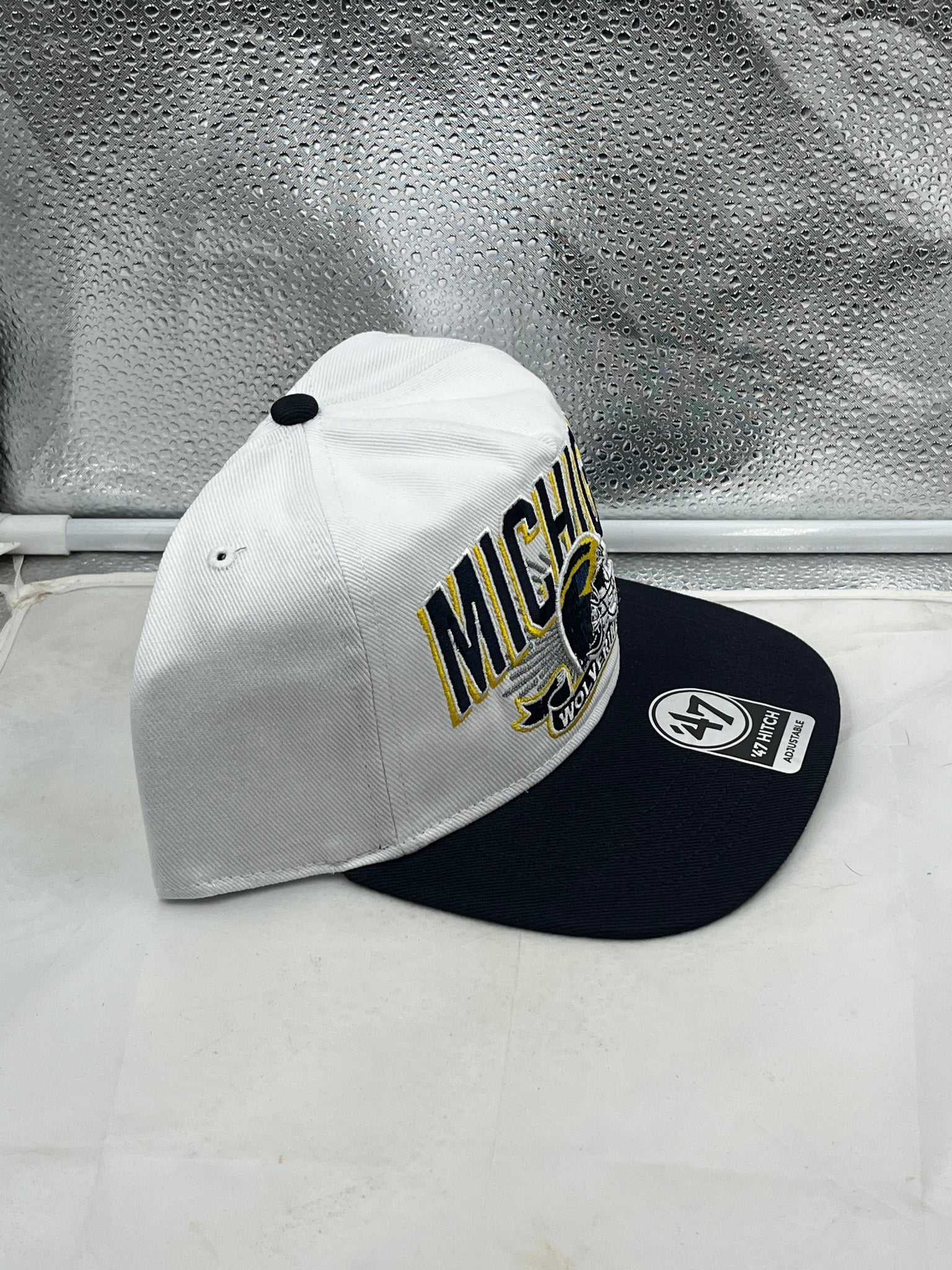 Show off your team spirit with the Michigan Wolverines hat from '47 Brand. This white two-tone hitch adjustable snapback hat is perfect for both game day and casual wear. Designed with the dedicated Michigan Wolverines fan in mind, this stylish cap combines comfort and functionality.
