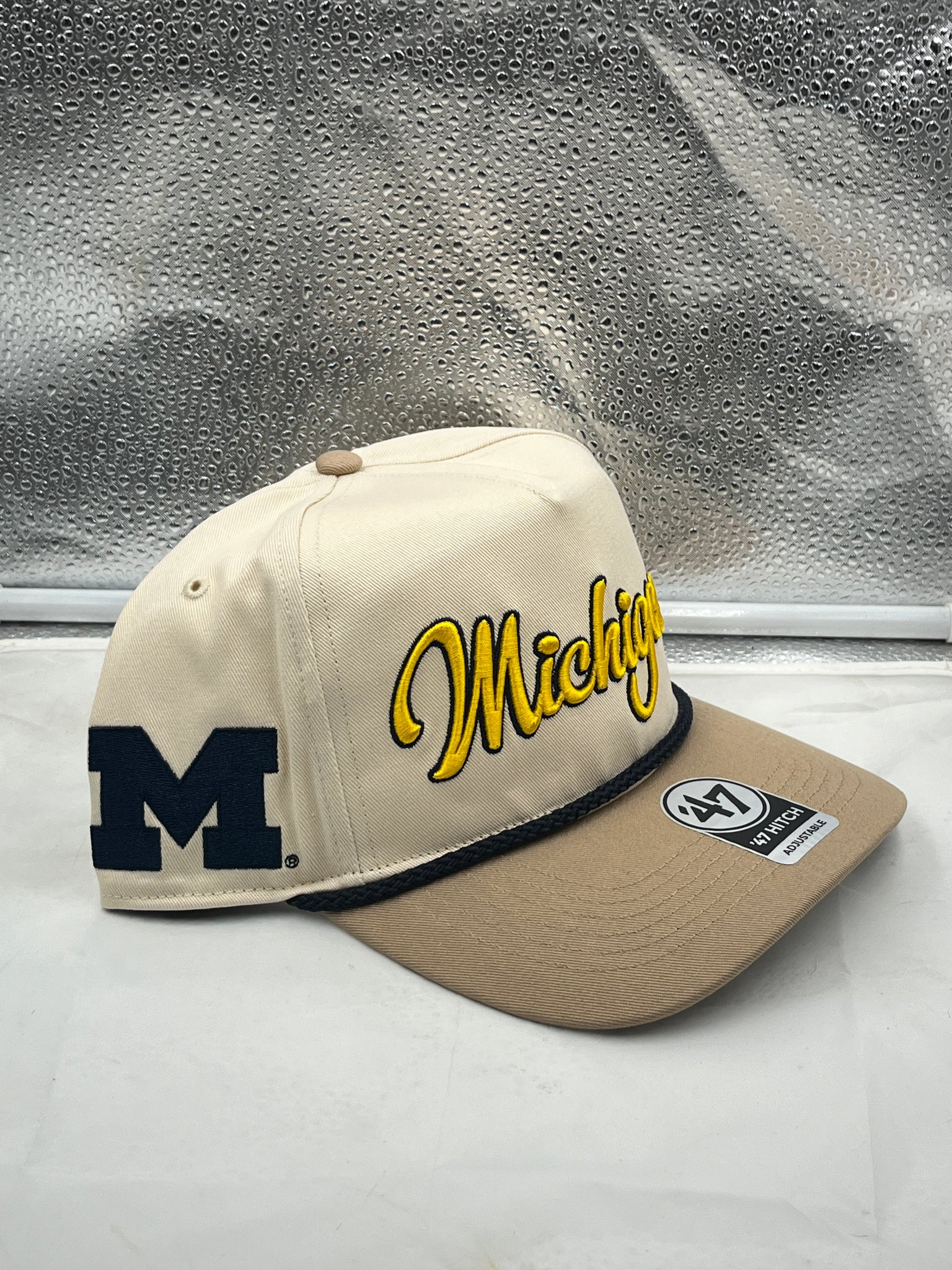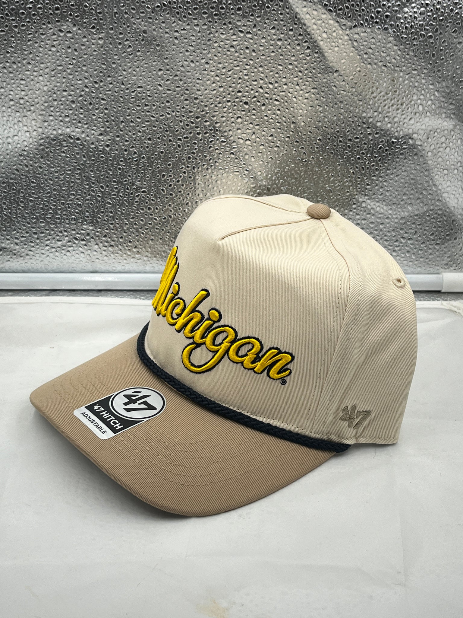 Michigan Wolverines NCAA '47 Brand Natural Two Tone Script Hitch Adjustable Hat - Casey's Sports Store