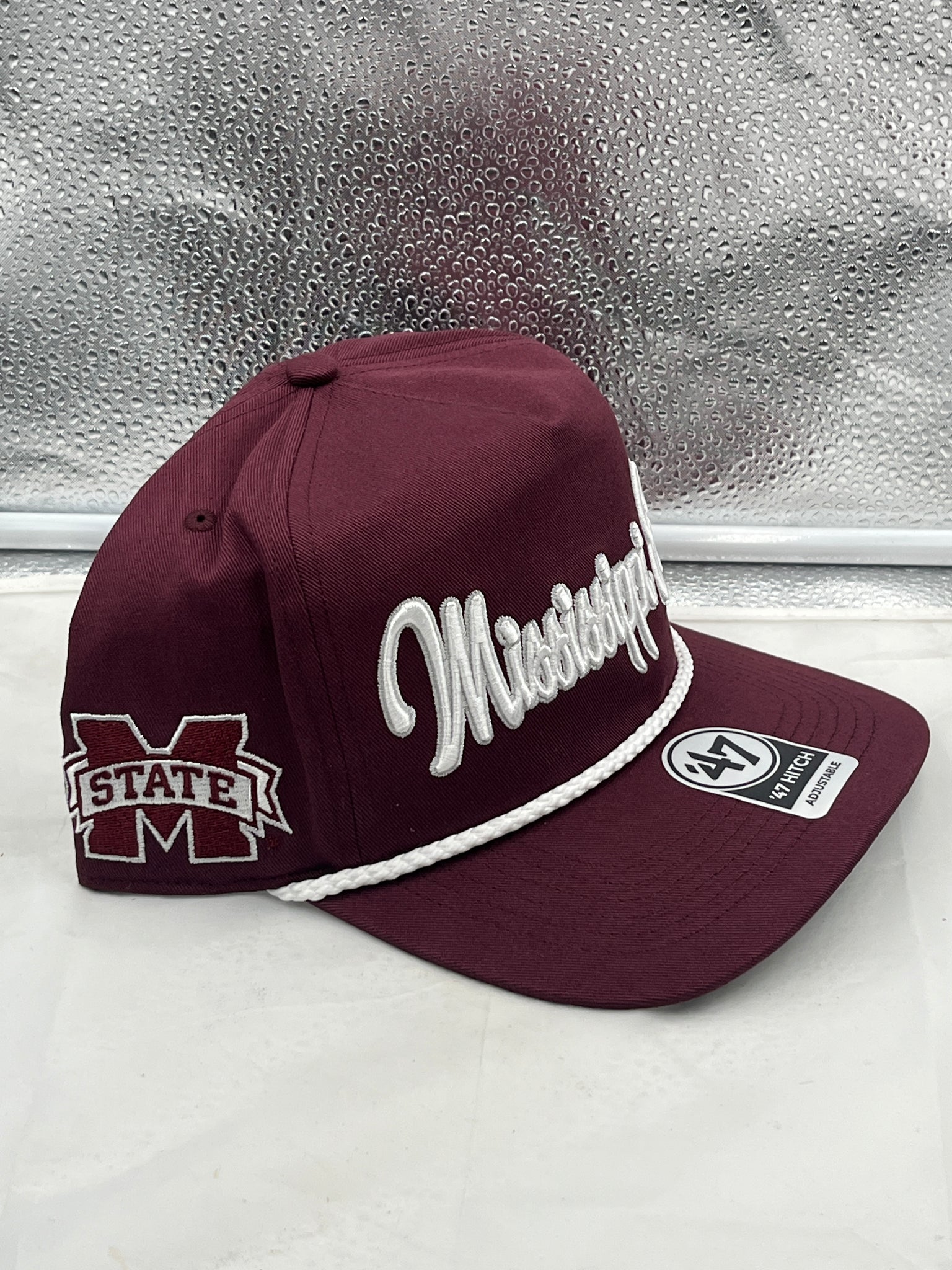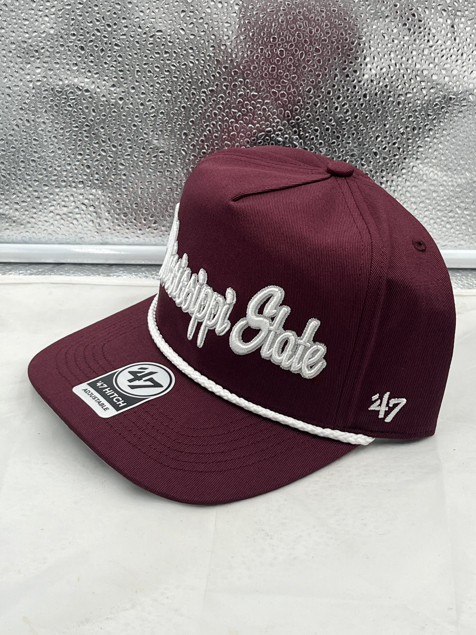 Show your support for the Mississippi State Bulldogs with the NCAA '47 Maroon Hitch Rope Adjustable Snapback Hat. This stylish and versatile accessory is perfect for any die-hard fan looking to elevate their game day outfit or casual wear.