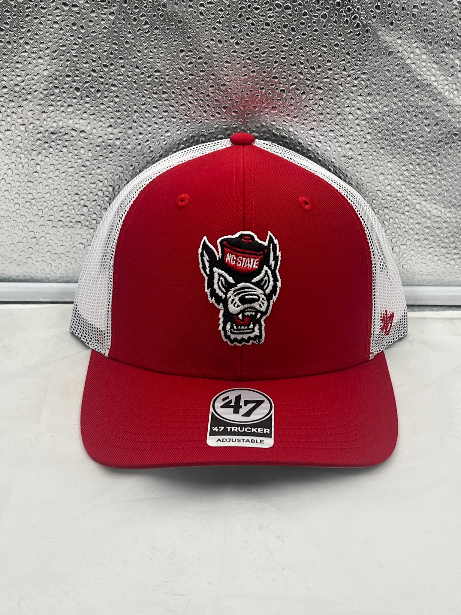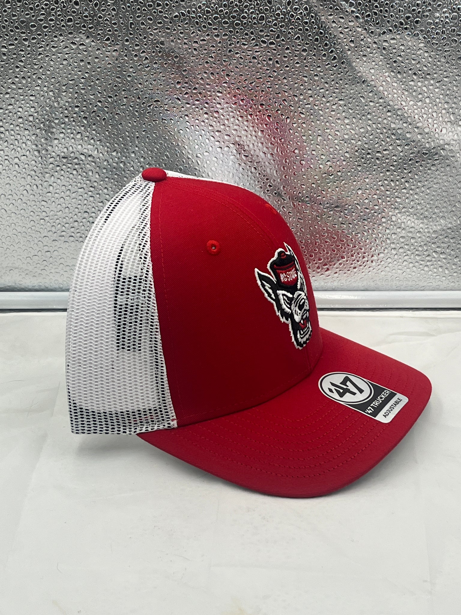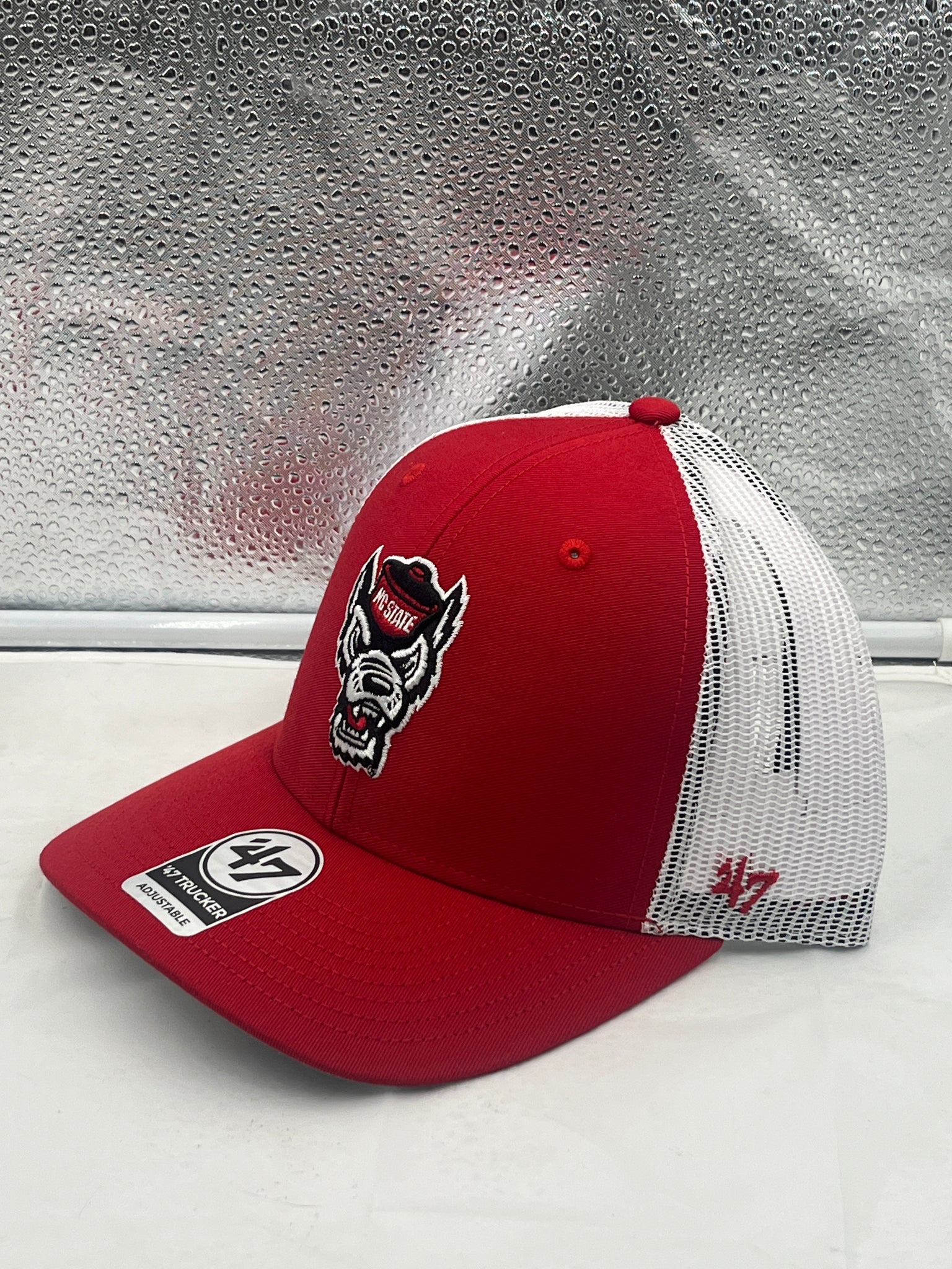 NC State Wolfpack NCAA '47 Brand Red Trucker Mesh Adjustable Snapback Hat - Casey's Sports Store