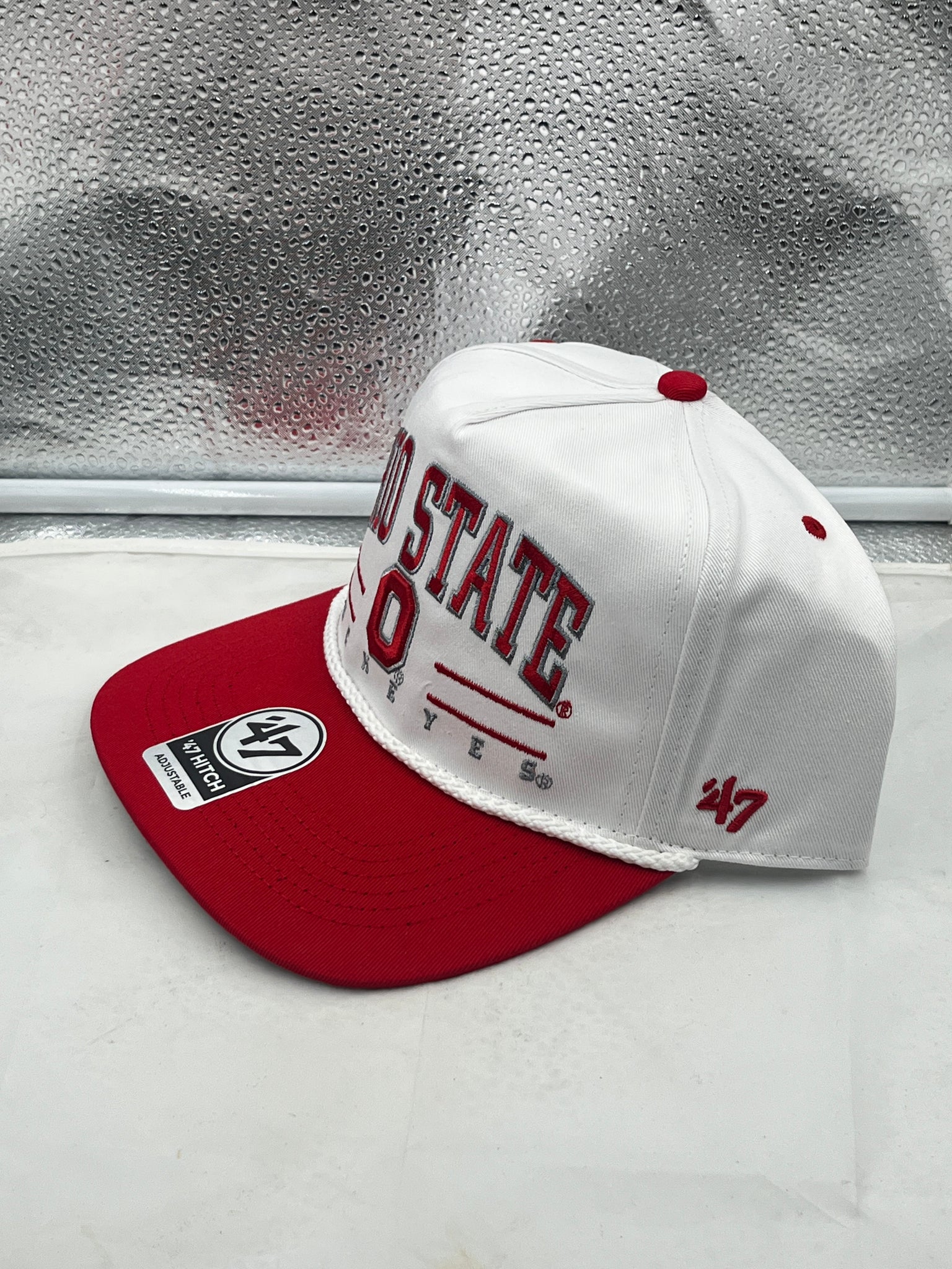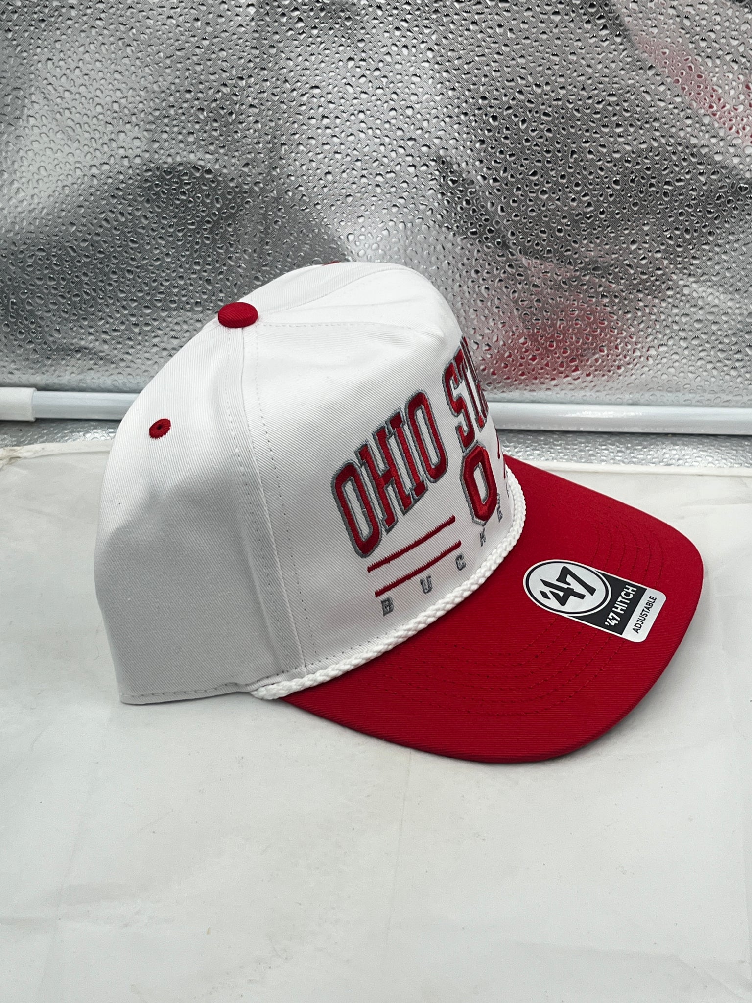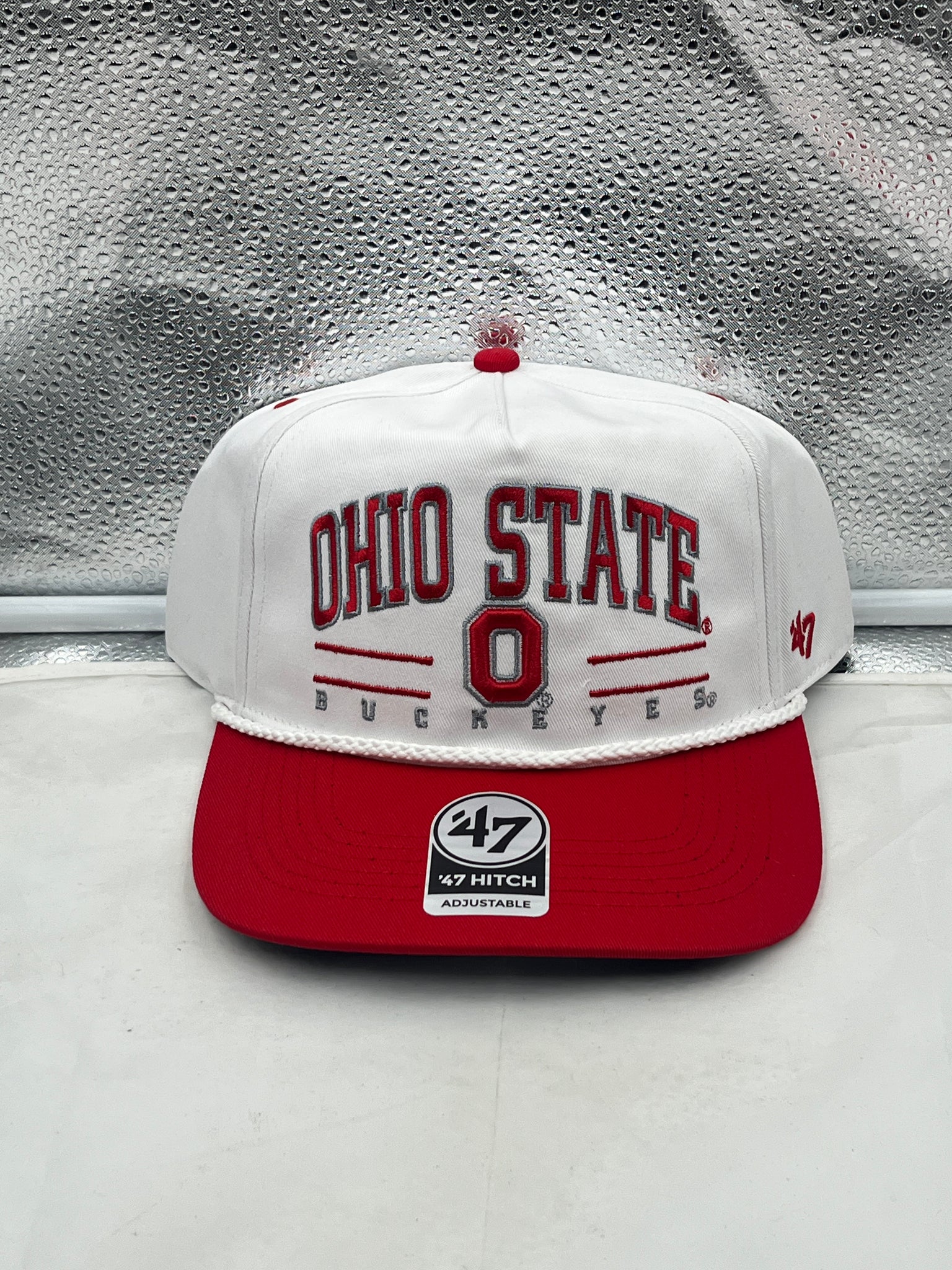 Show your team spirit with the Ohio State Buckeyes NCAA '47 Brand White TT Hitch Rope Adjustable Snapback Hat. This stylish and functional headgear is perfect for every die-hard Buckeyes fan looking to flaunt their loyalty while enjoying comfort and style.