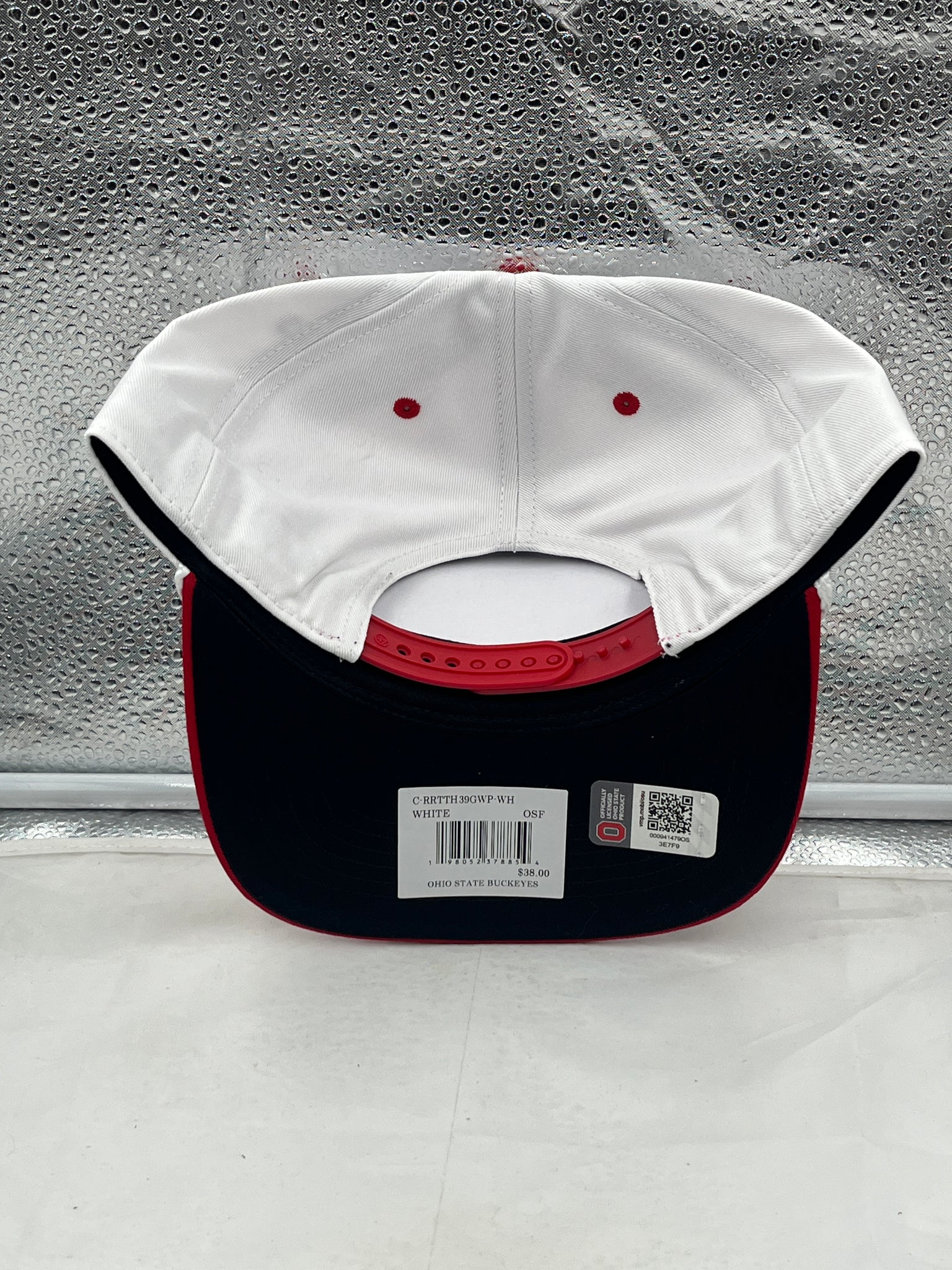 Constructed with high-quality materials, this snapback hat boasts a unique design that features a trendy rope accent on the front, making it a standout accessory for any game day outfit. The clean white color serves as a versatile base, easily pairing with any Buckeyes merchandise. Whether you're cheering from the stands or enjoying a day out, this hat ensures you stay fashionable while representing your favorite college football team.