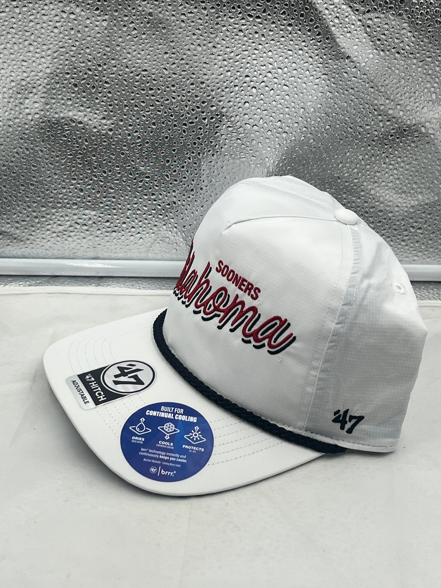 Show your unwavering support for the Oklahoma Sooners with the official NCAA '47 Brand White Script Hitch Rope Adjustable Snapback Hat. This stylish and functional cap is perfect for game days, tailgating, or simply representing your favorite college team wherever you go.
