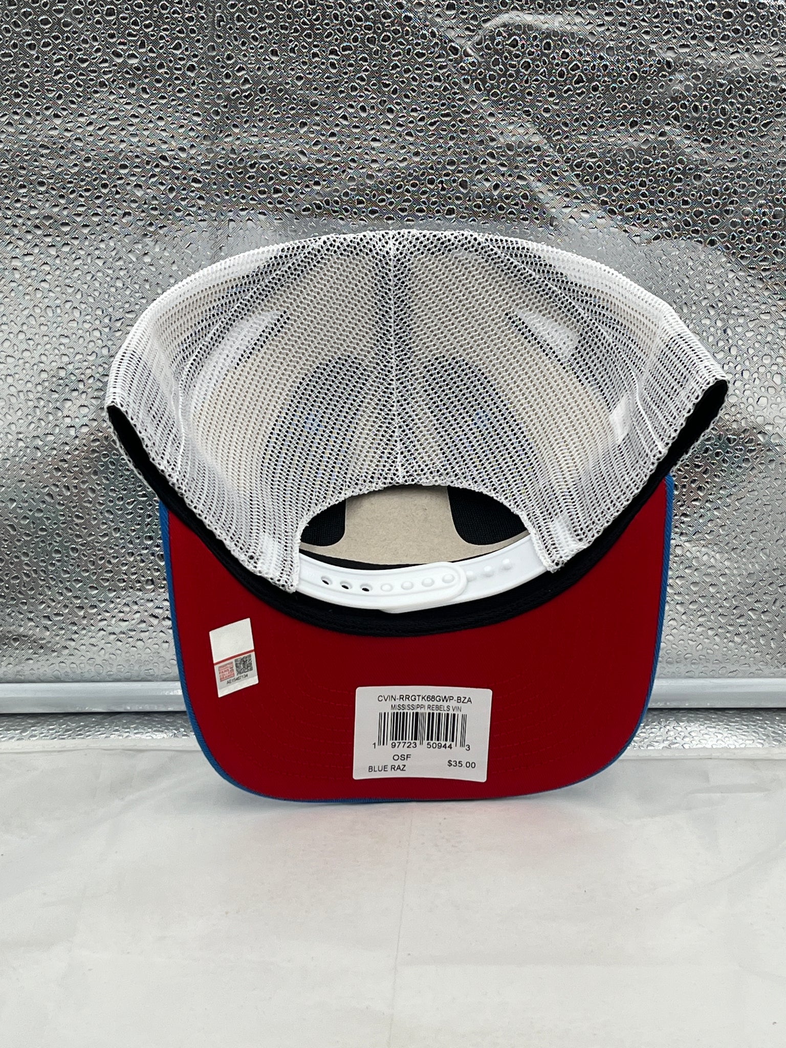 Ole Miss Rebels NCAA '47 Brand Blue Trucker Mesh Adjustable Snapback Hat featuring a breathable mesh back for comfort and airflow.