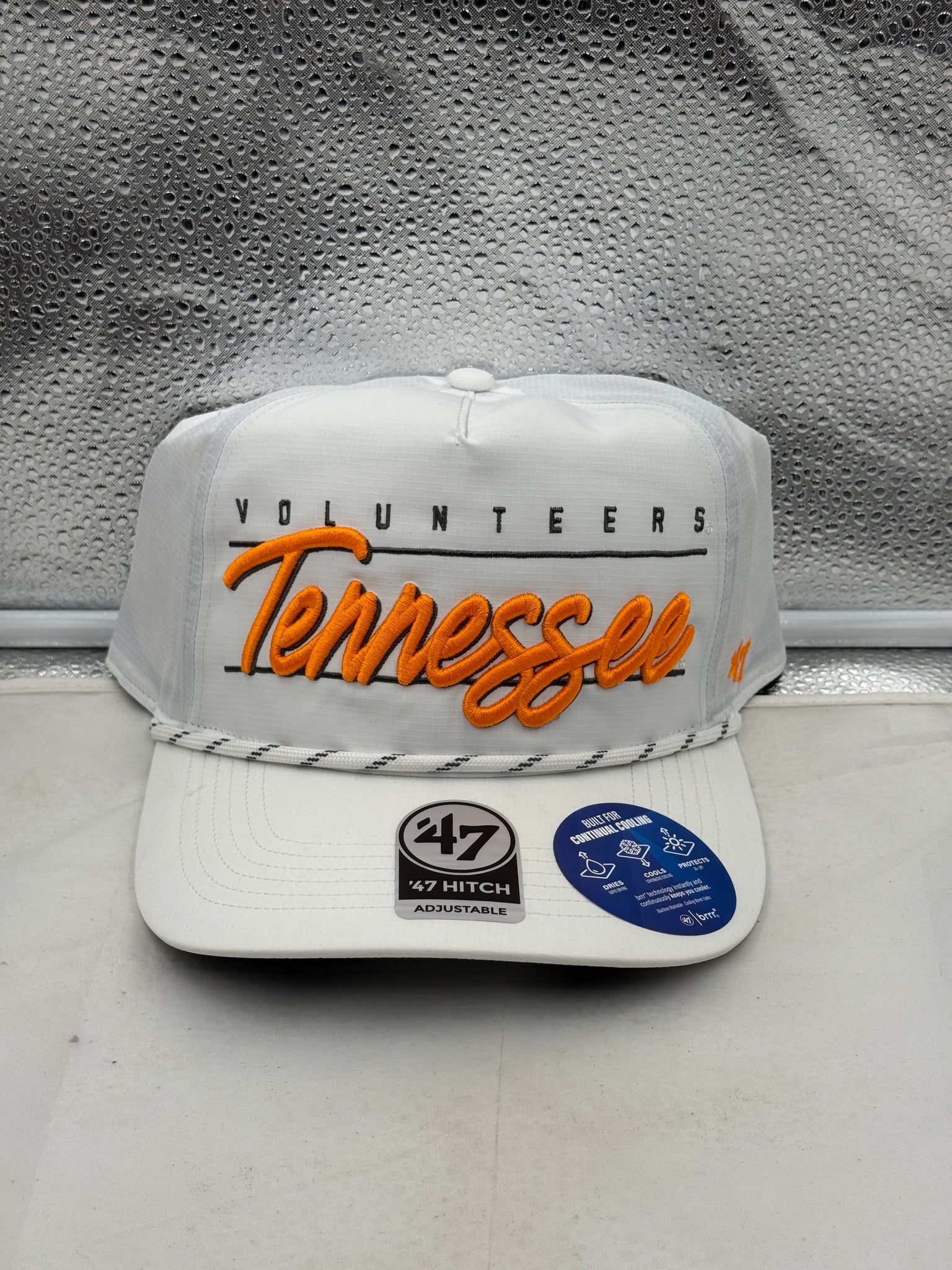 Tennessee Volunteers NCAA '47 Brand White Hitch Rope Adjustable Snapback Hat showcasing team spirit, featuring the iconic logo, perfect for fans.