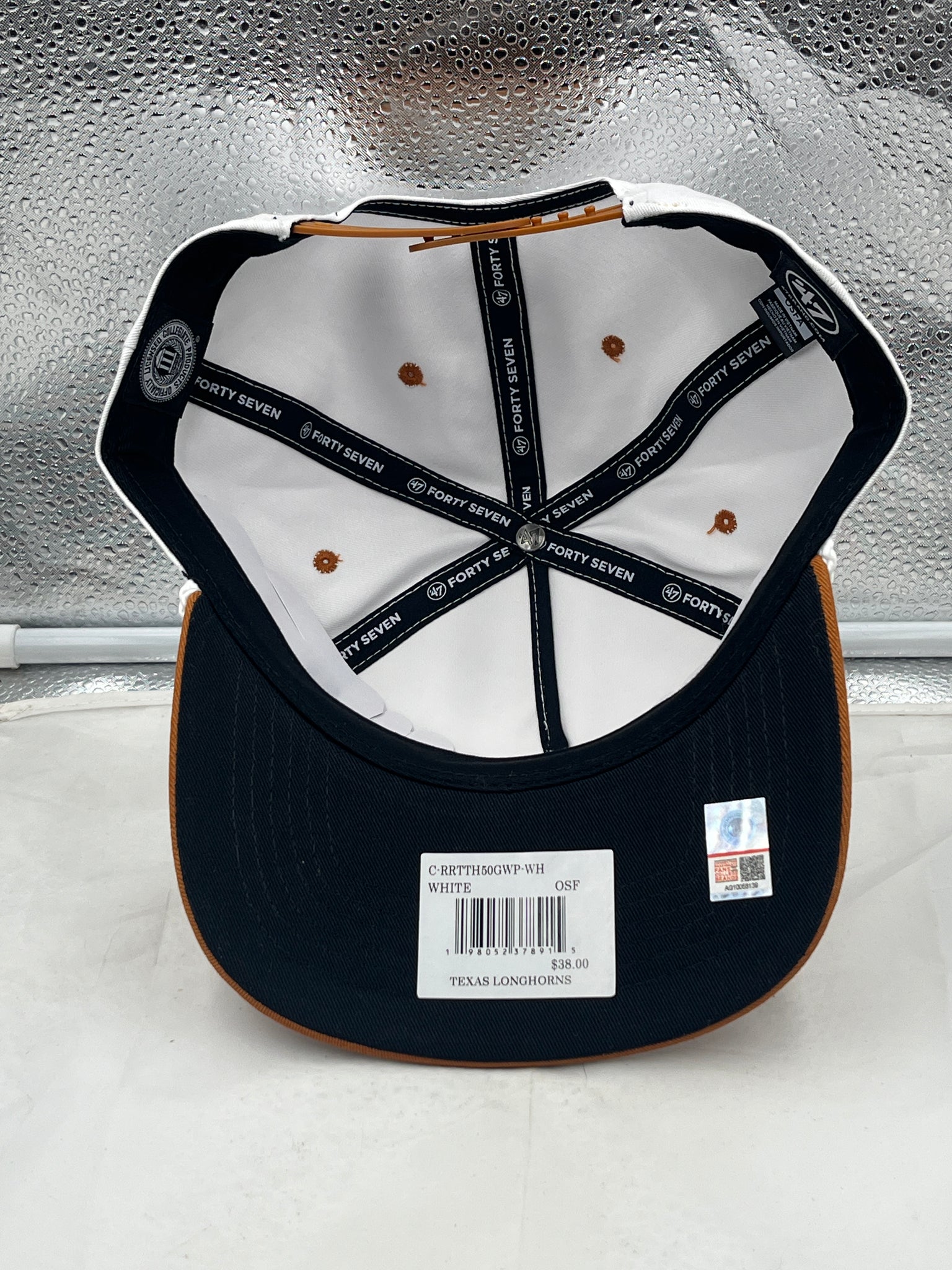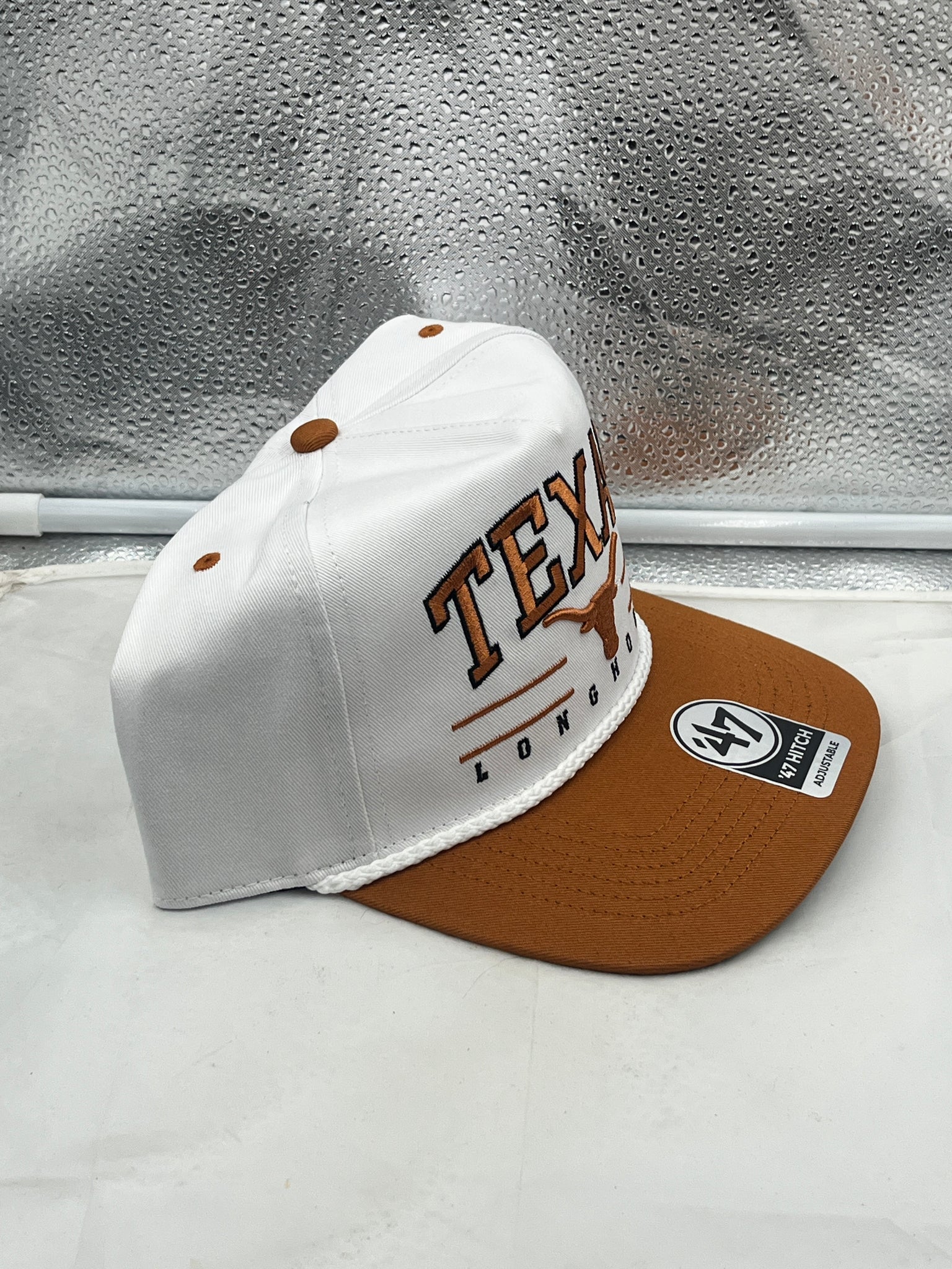 Step up your game day style with the Texas Longhorns NCAA '47 Brand White TT Hitch Rope Adjustable Snapback Hat. This trendy cap showcases your allegiance to the Longhorns while providing ultimate comfort and a stylish look. Made for fans who demand quality and an outstanding visual appeal, this hat is the perfect accessory for any Texas supporter.