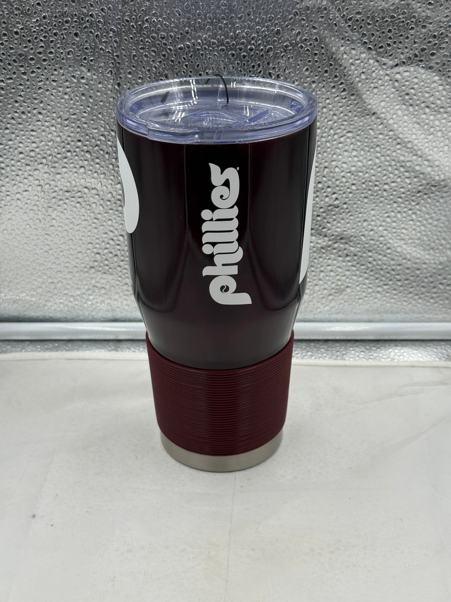 Show off your team pride while enjoying your favorite beverages with the Philadelphia Phillies Tumbler. This 30oz throwback red tumbler cup is designed for the ultimate sports fan. Whether you're heading to a game, tailgating, or just relaxing at home, this tumbler keeps your drink hot or cold for hours.