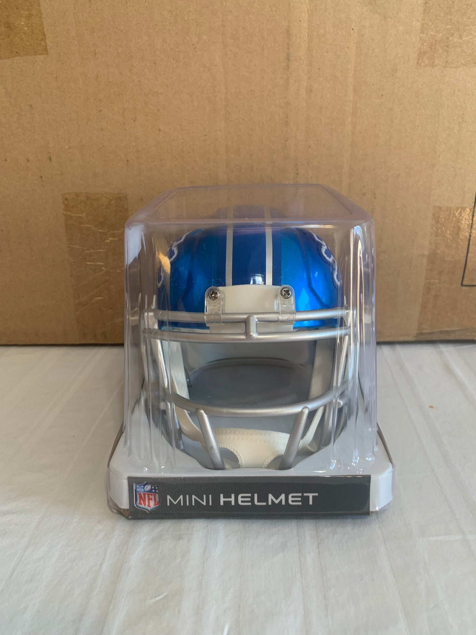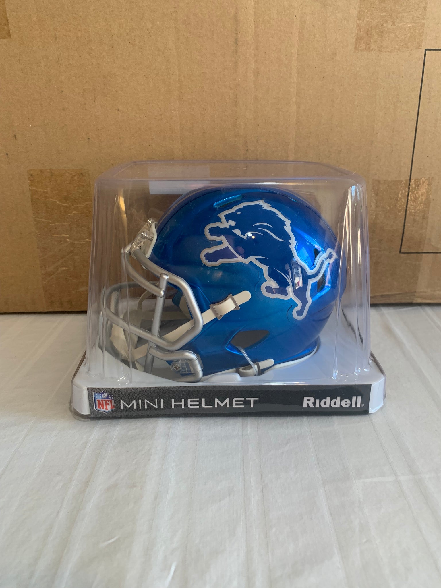 The replica mini helmet features the iconic Detroit Lions logo prominently displayed on the side, allowing you to display your team allegiance proudly. Its vibrant blue color adds a fresh twist that sets it apart from other helmets, making it a standout piece in any collection. Whether you place it on your desk, shelf, or in a display case, this mini helmet is sure to grab attention and spark conversations about your favorite team.