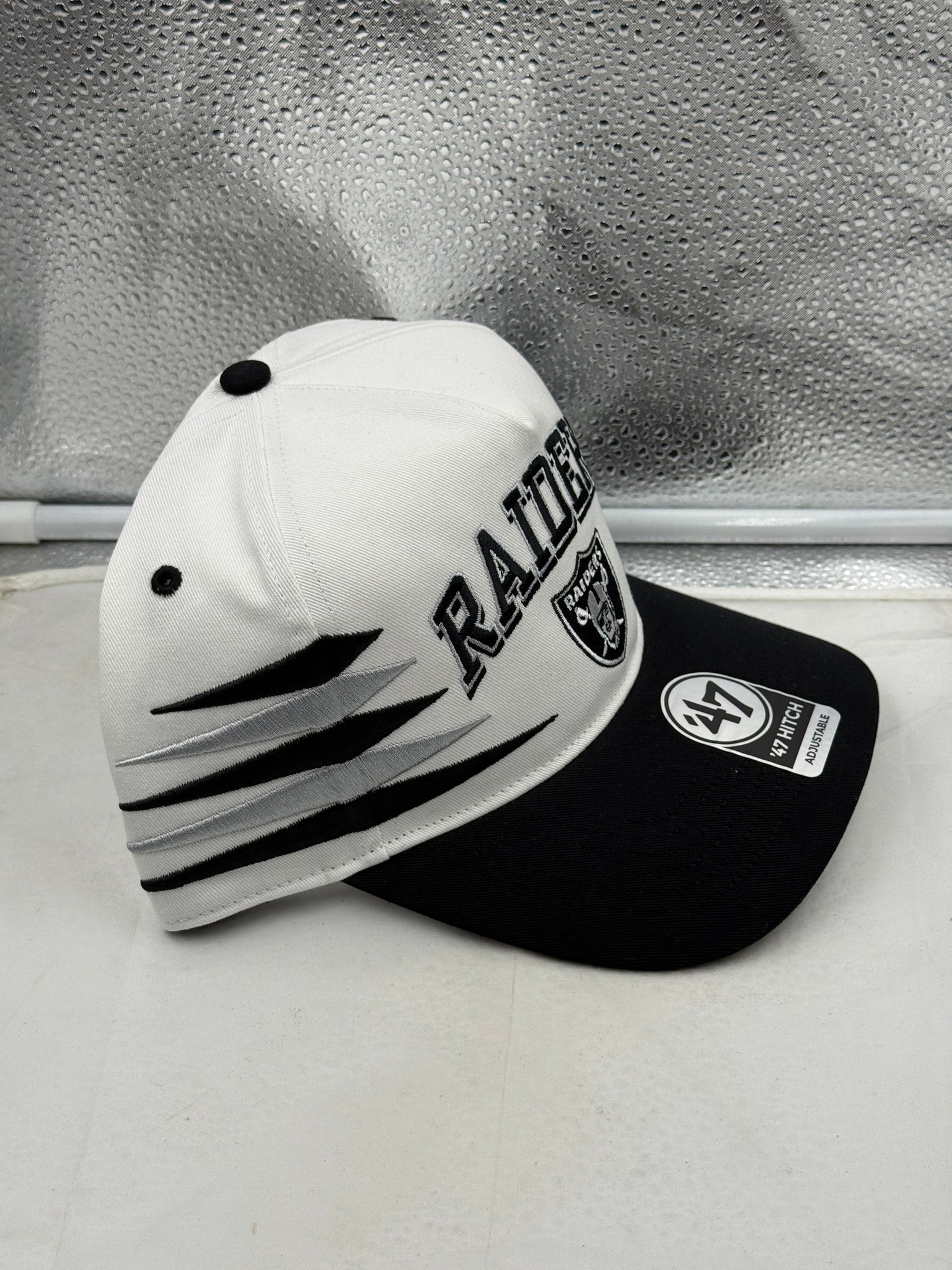 Show your team spirit and style with the Las Vegas Raiders NFL '47 Brand White TT Diamond Hitch Snapback Adjustable Hat. This stylish headwear is perfect for any Raiders fan looking to sport their team's colors while staying comfortable.