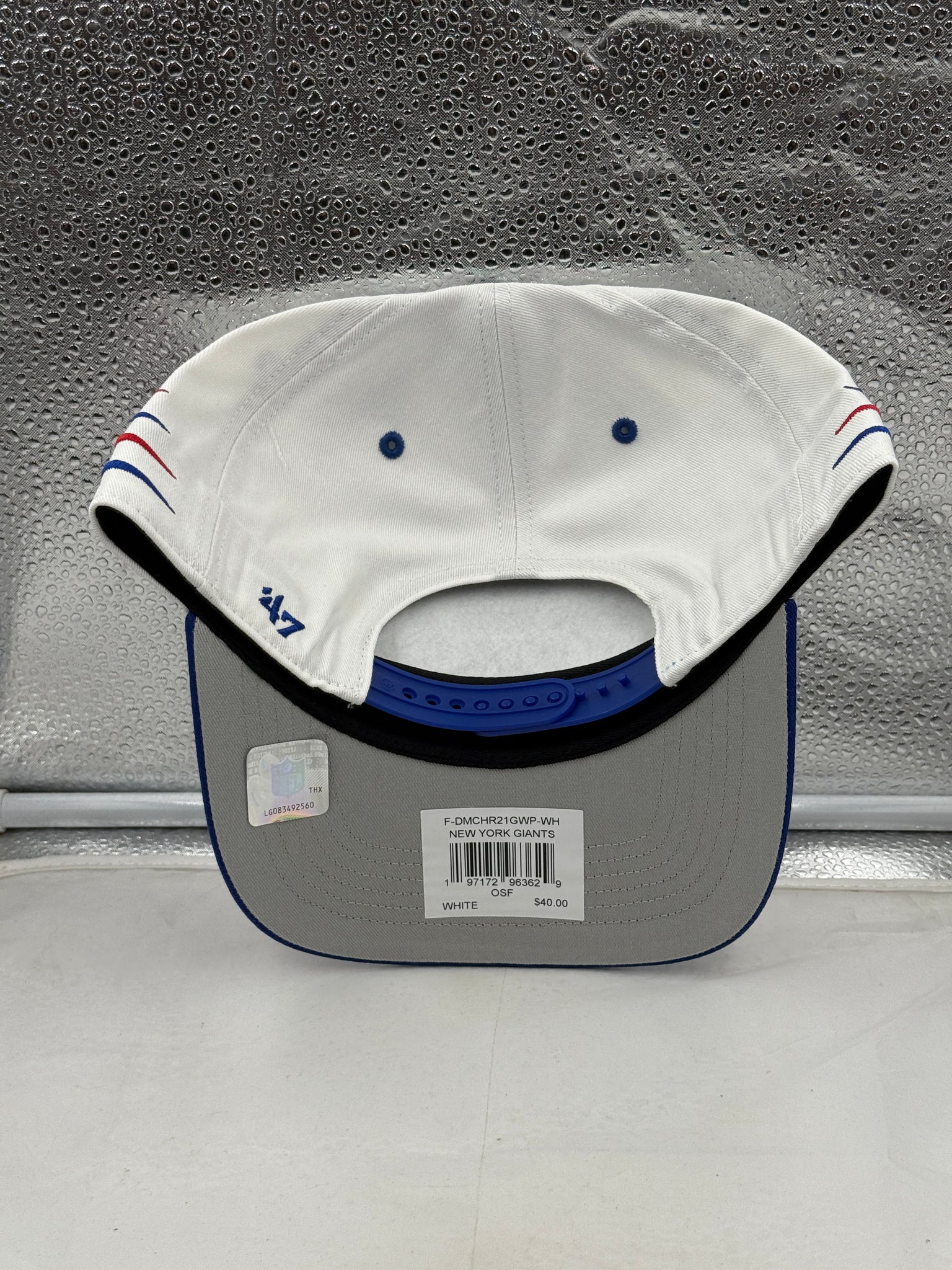 • Load image into Gallery viewer, New York Giants NFL '47 Brand White TT Diamond Hitch Snapback Adjustable Hat showcasing its stylish design with snapback closure, perfect for dedicated fans.