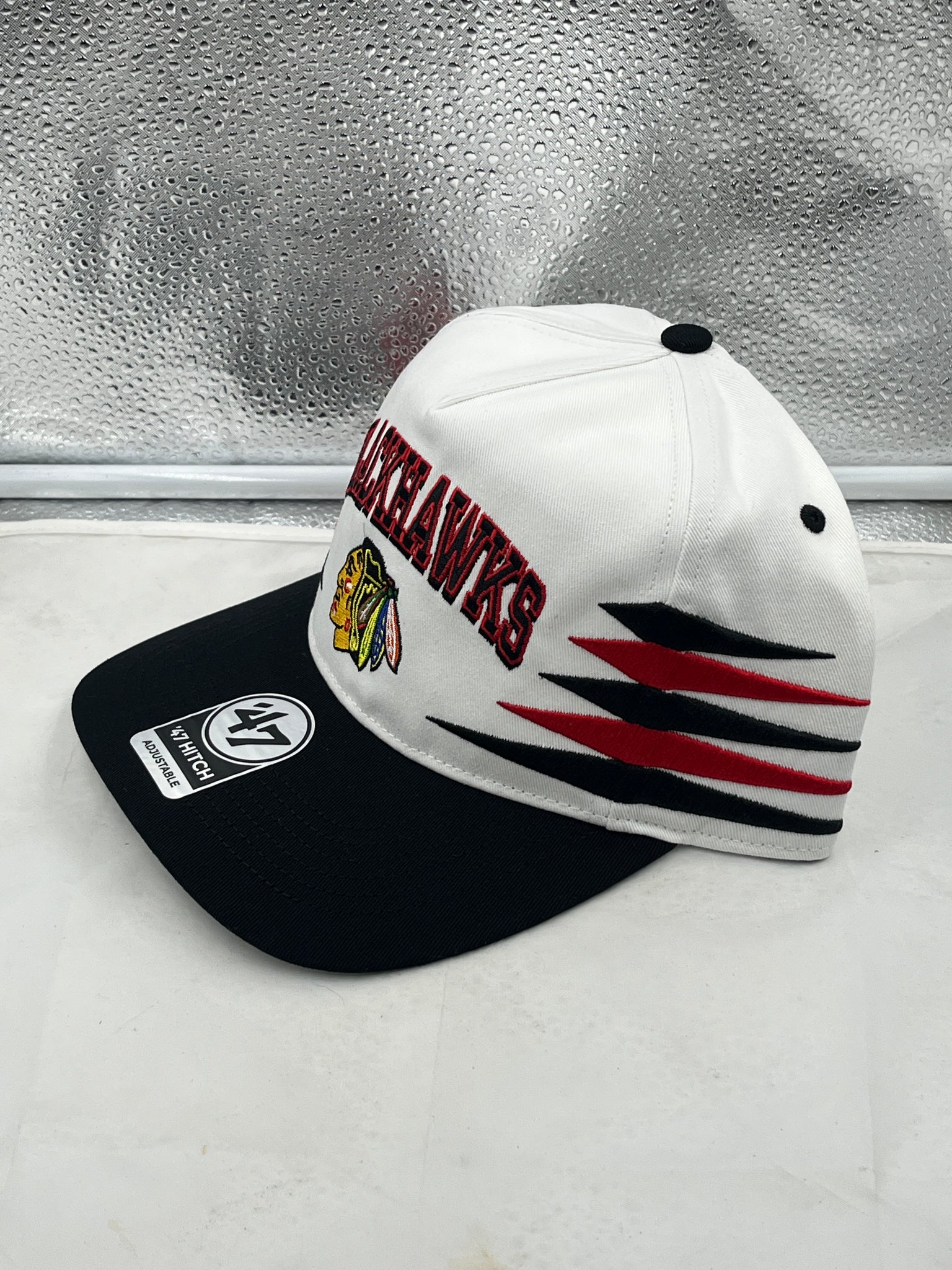 Step up your game day style with the Chicago Blackhawks NHL '47 Brand White Diamond Hitch Adjustable Snapback Hat. This premium-quality hat is perfect for passionate fans who want to support their team in fashion.