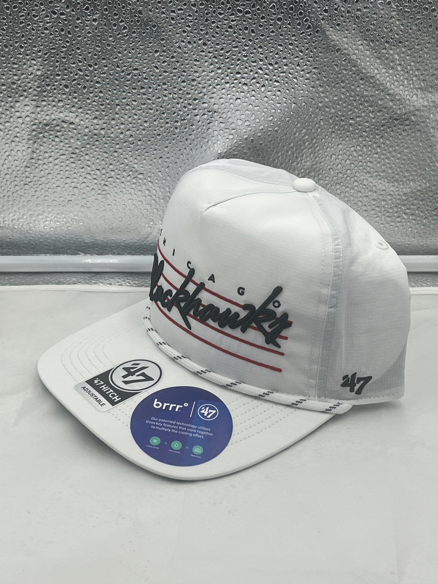 Elevate your game day style with the Chicago Blackhawks NHL '47 White Script Hitch Rope Adjustable Snapback Hat. This striking headwear piece is a must-have for any dedicated Blackhawks fan. Crafted with quality materials, this snapback hat brings both comfort and flair to your wardrobe.