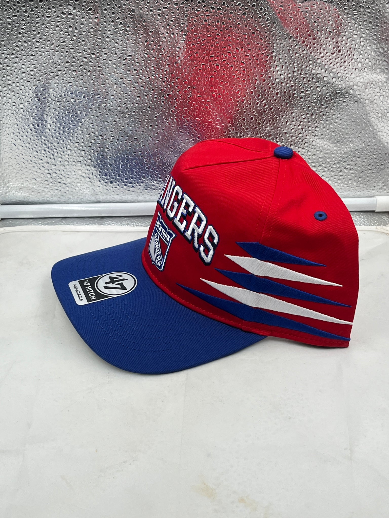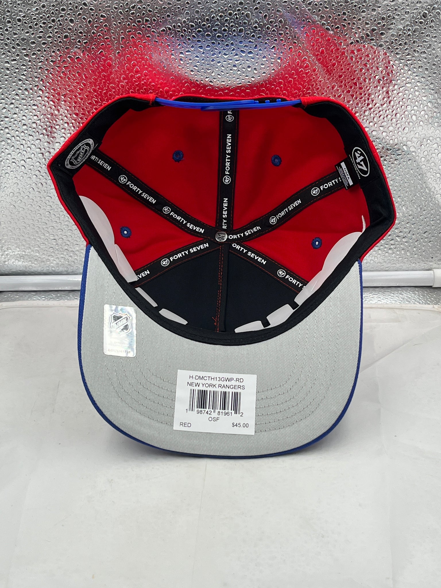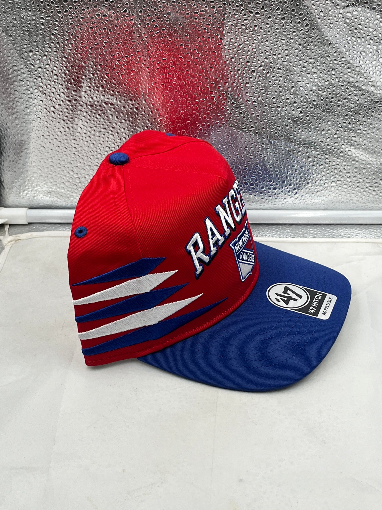 Show off your team spirit with the New York Rangers NHL '47 Brand Red Diamond Hitch Adjustable Snapback Hat. This stylish and versatile hat is perfect for any die-hard Rangers fan looking to make a statement. Whether you're heading to the game, hanging out with friends, or just showing off your support, this hat is an essential addition to your wardrobe.