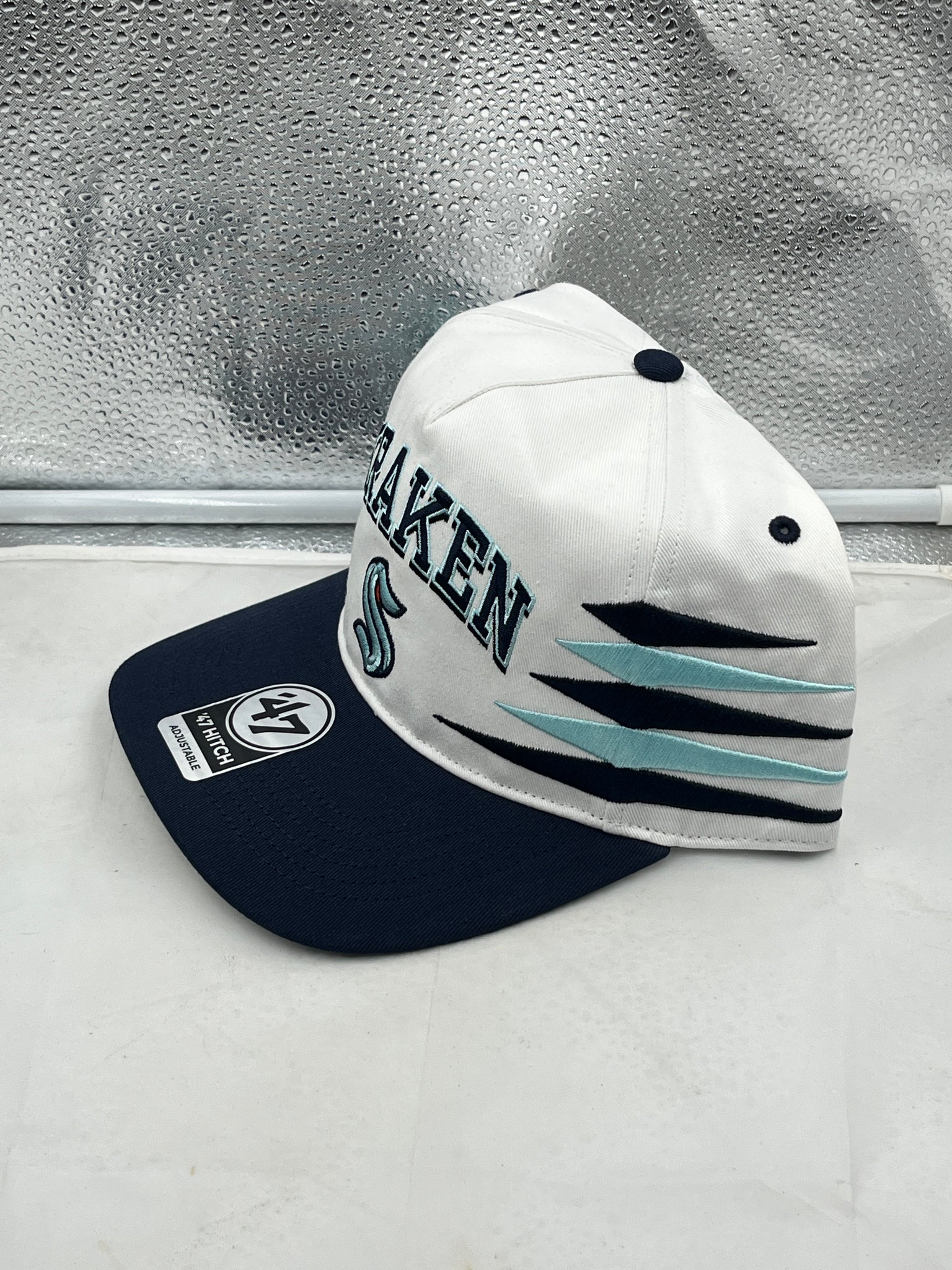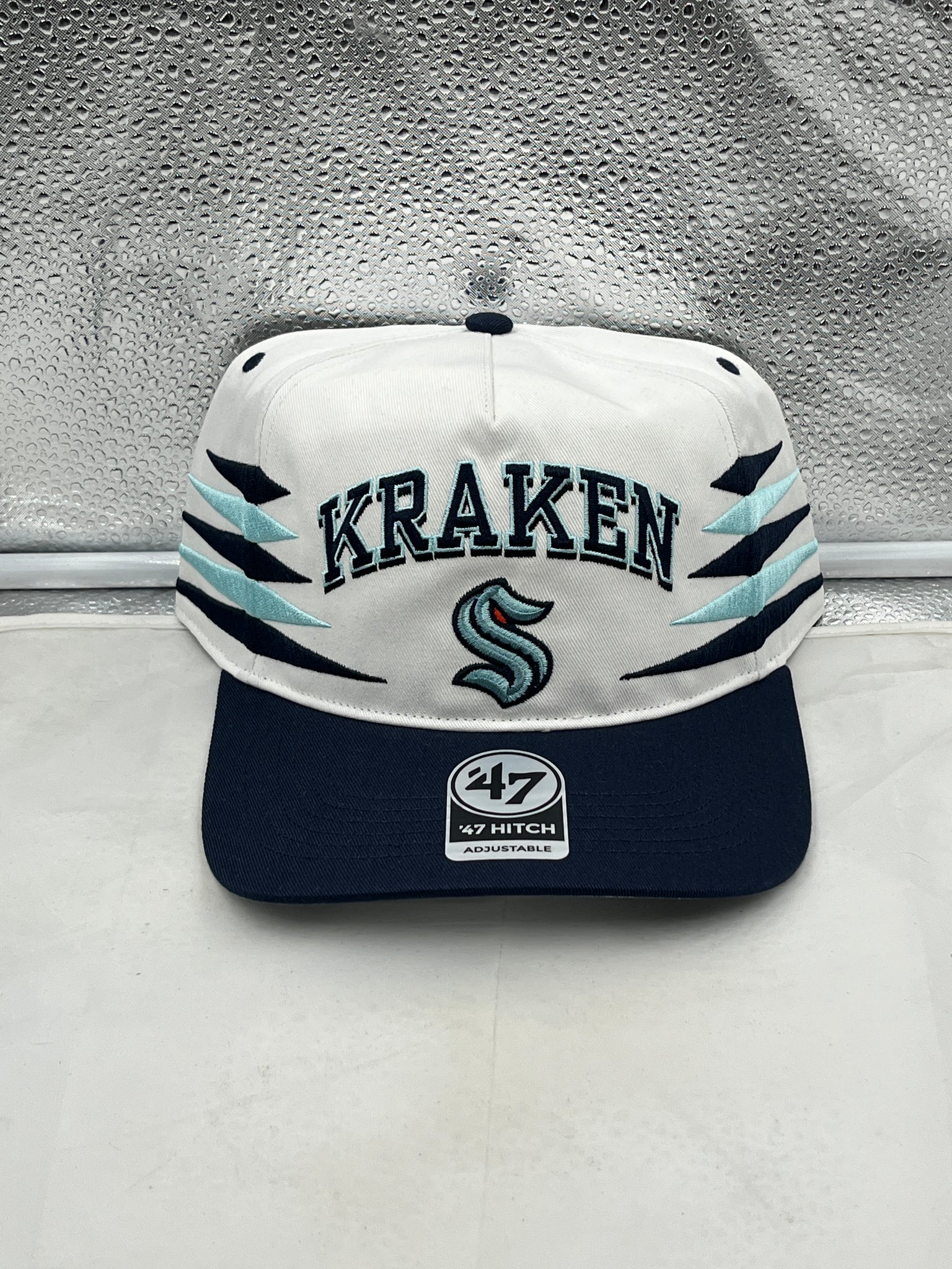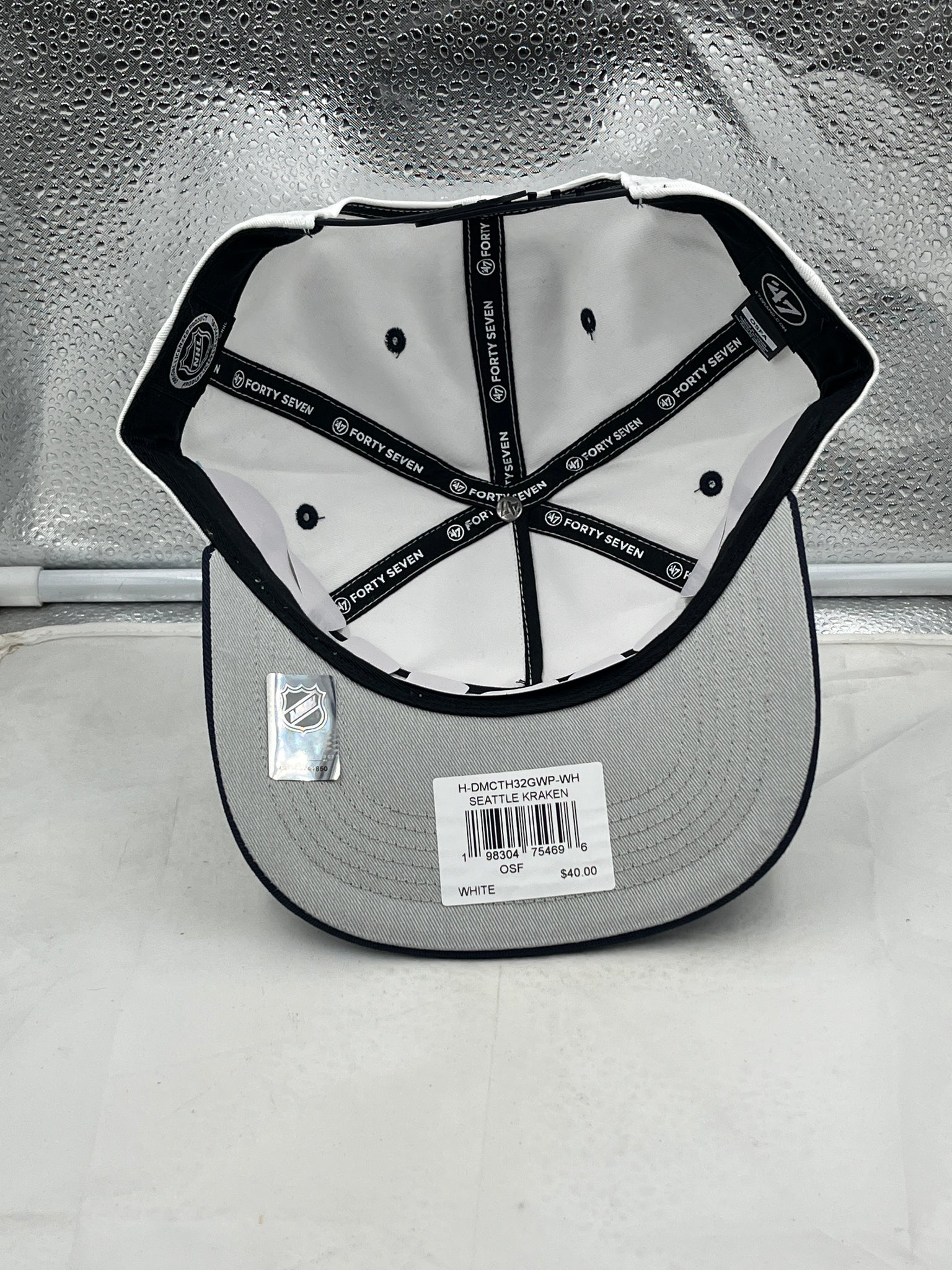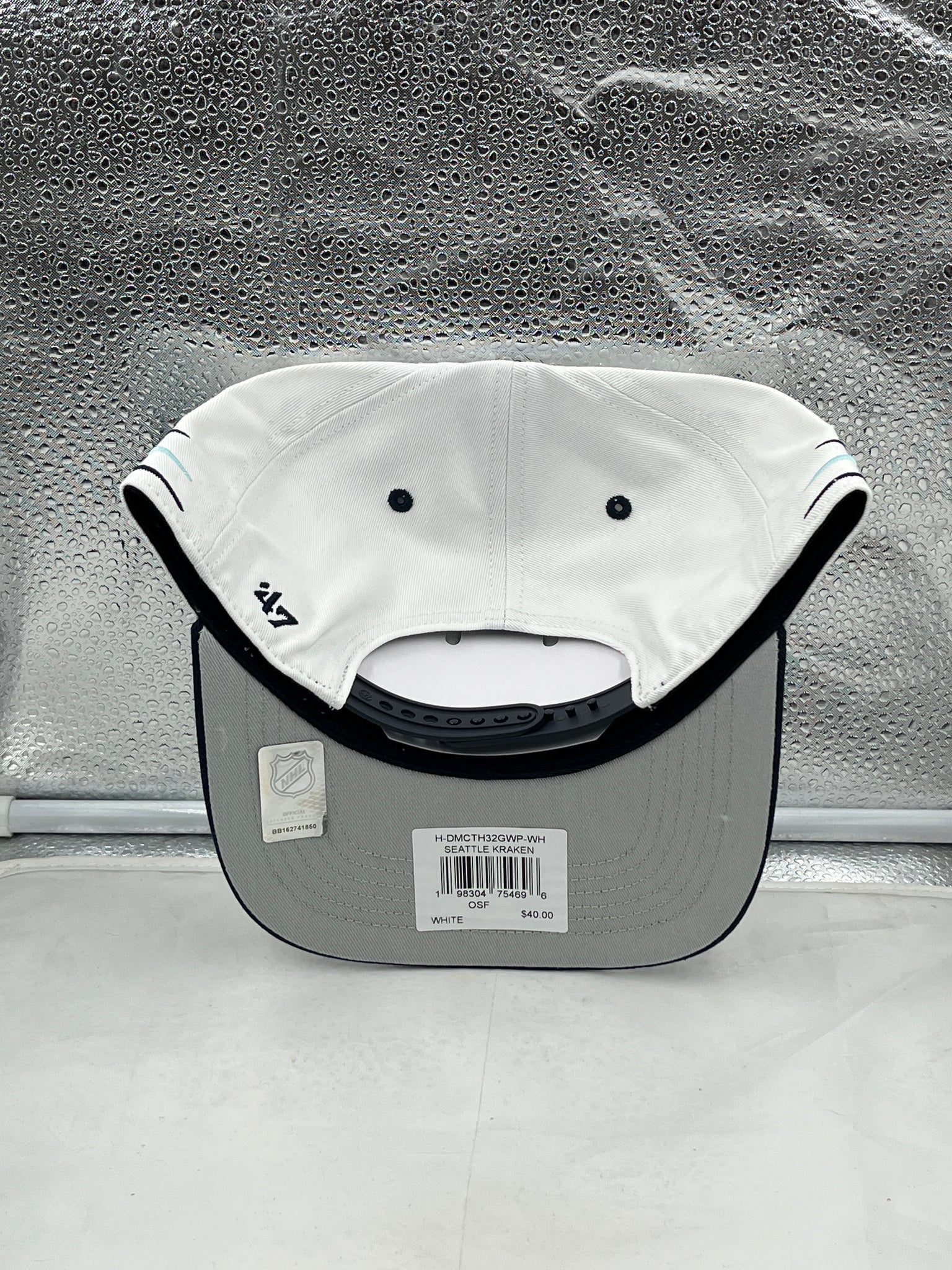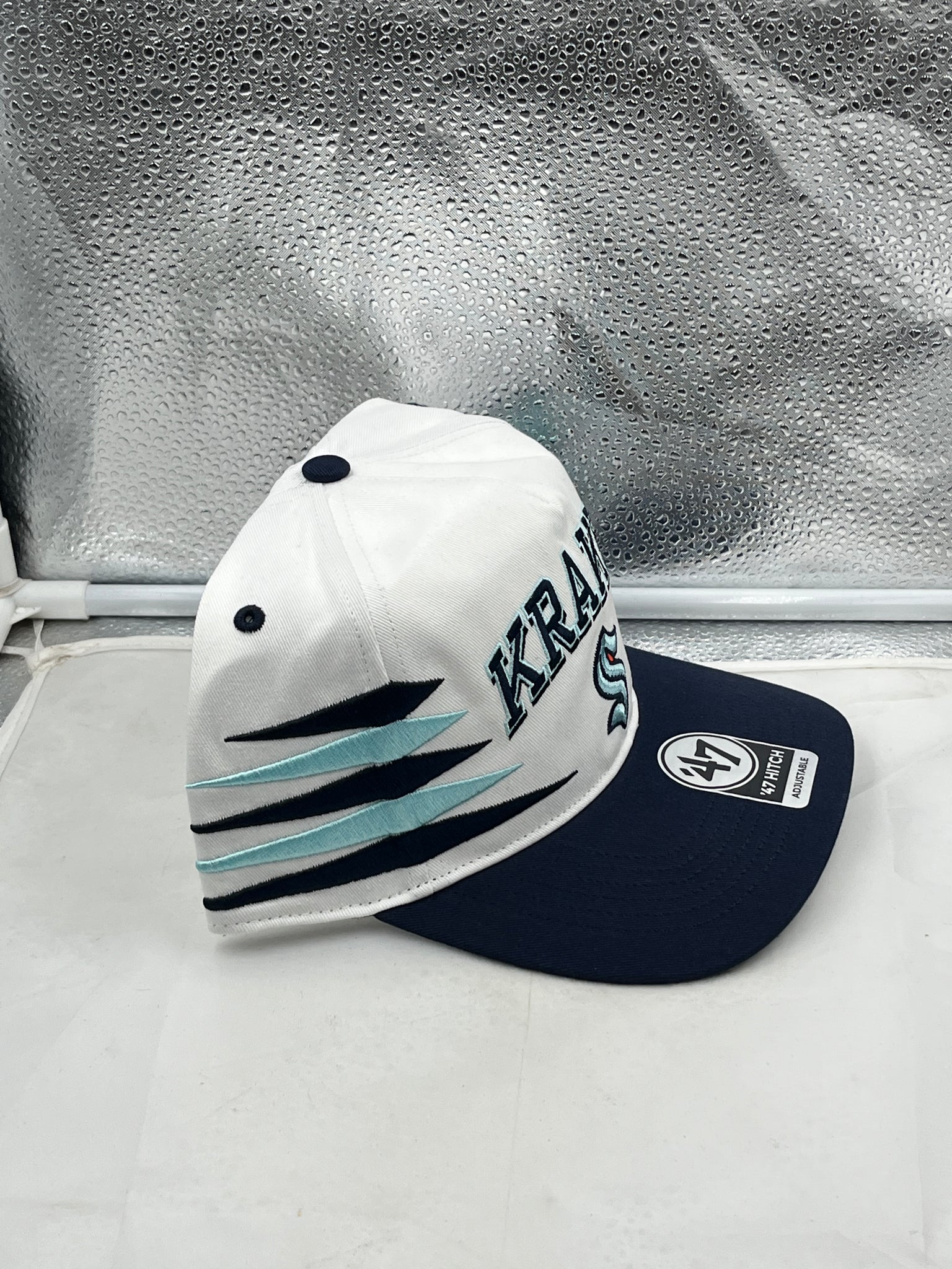 Seattle Kraken NHL '47 Brand White Diamond Hitch Adjustable Snapback Hat featuring team logo and adjustable snapback design.