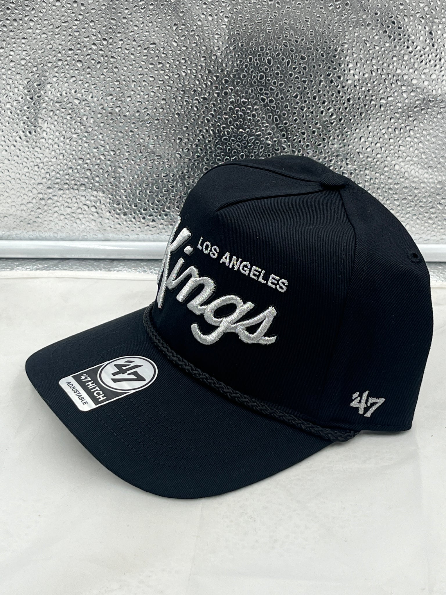 Show your unwavering support for the Los Angeles Kings with the NHL '47 Brand Black Script Hitch Rope Adjustable Snapback Hat. This stylish and comfortable snapback cap is a perfect addition to any fan's collection, blending classic style with sporty flair.