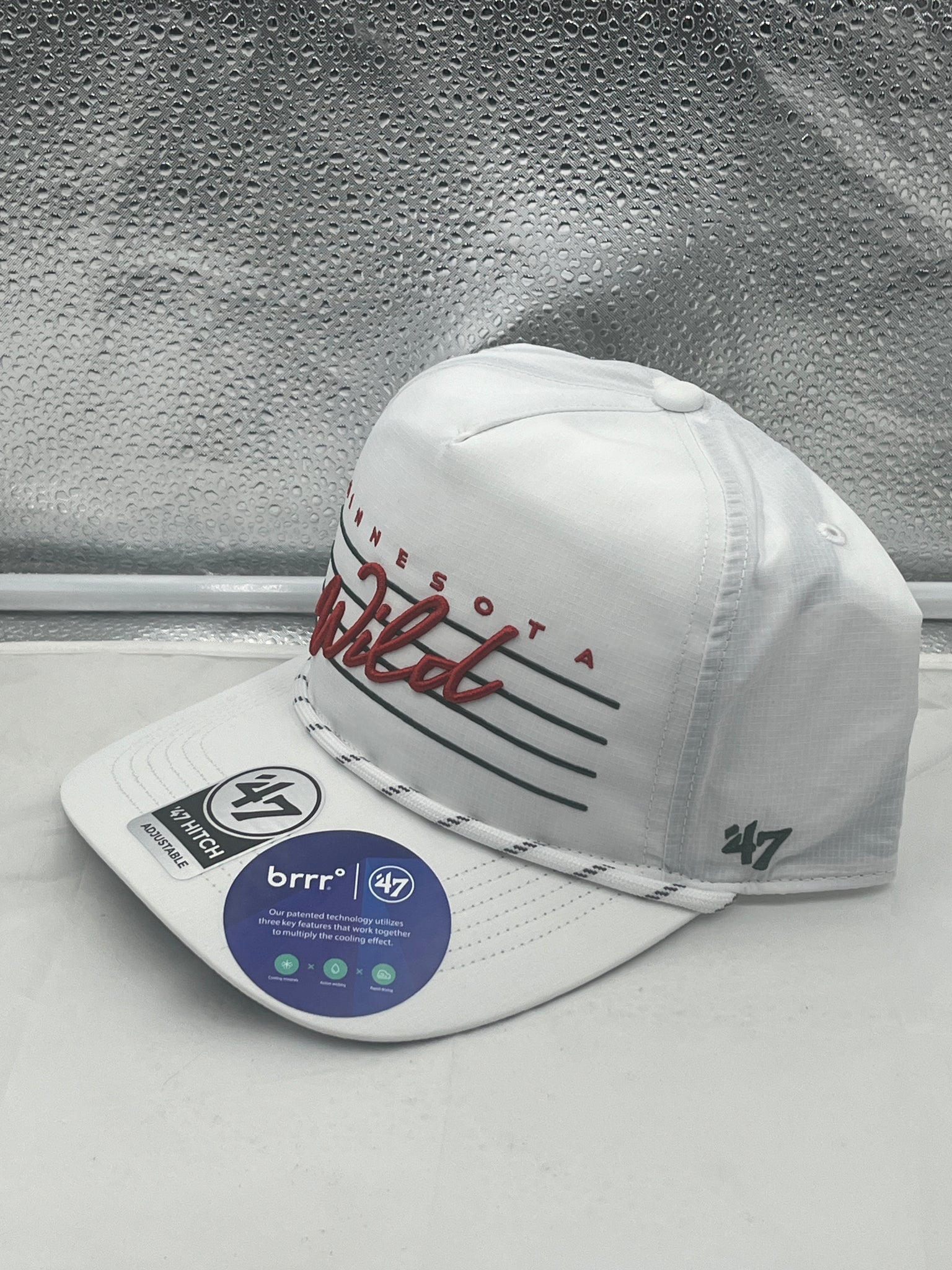 The Minnesota Wild NHL '47 Brand White Script Hitch Rope Adjustable Snapback Hat is more than just a hat; it's a statement of your allegiance to the team. Whether you’re heading to a game at the Xcel Energy Center or enjoying a day out with friends, this hat is the perfect finishing touch to your look.