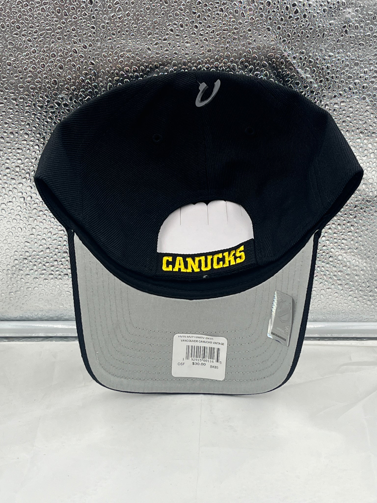 Featuring the iconic Canucks logo displayed prominently on the front, this hat allows you to represent your team with pride. The structured crown and curved peak give it a timeless silhouette that matches well with any attire, from jerseys to everyday wear.